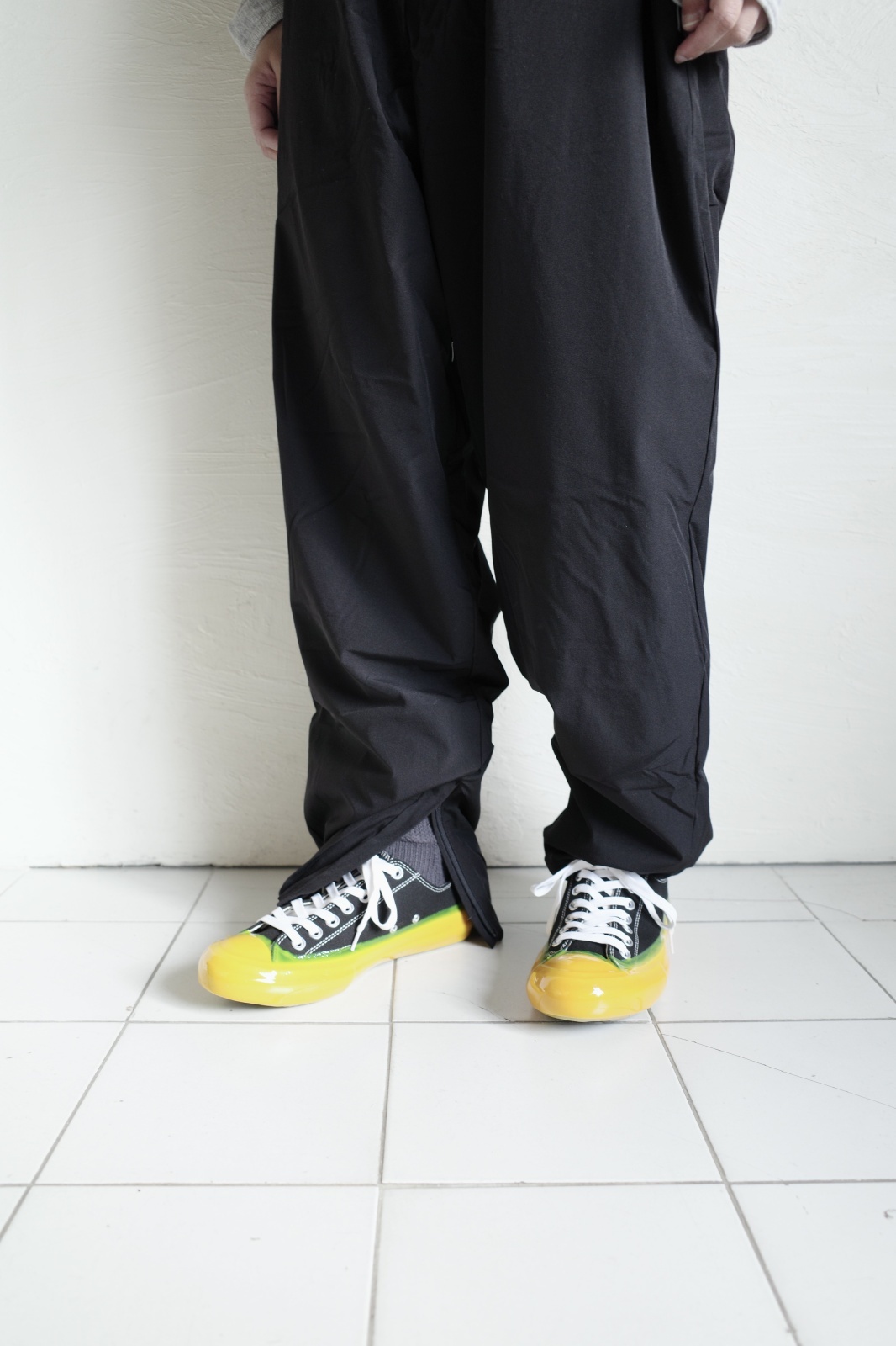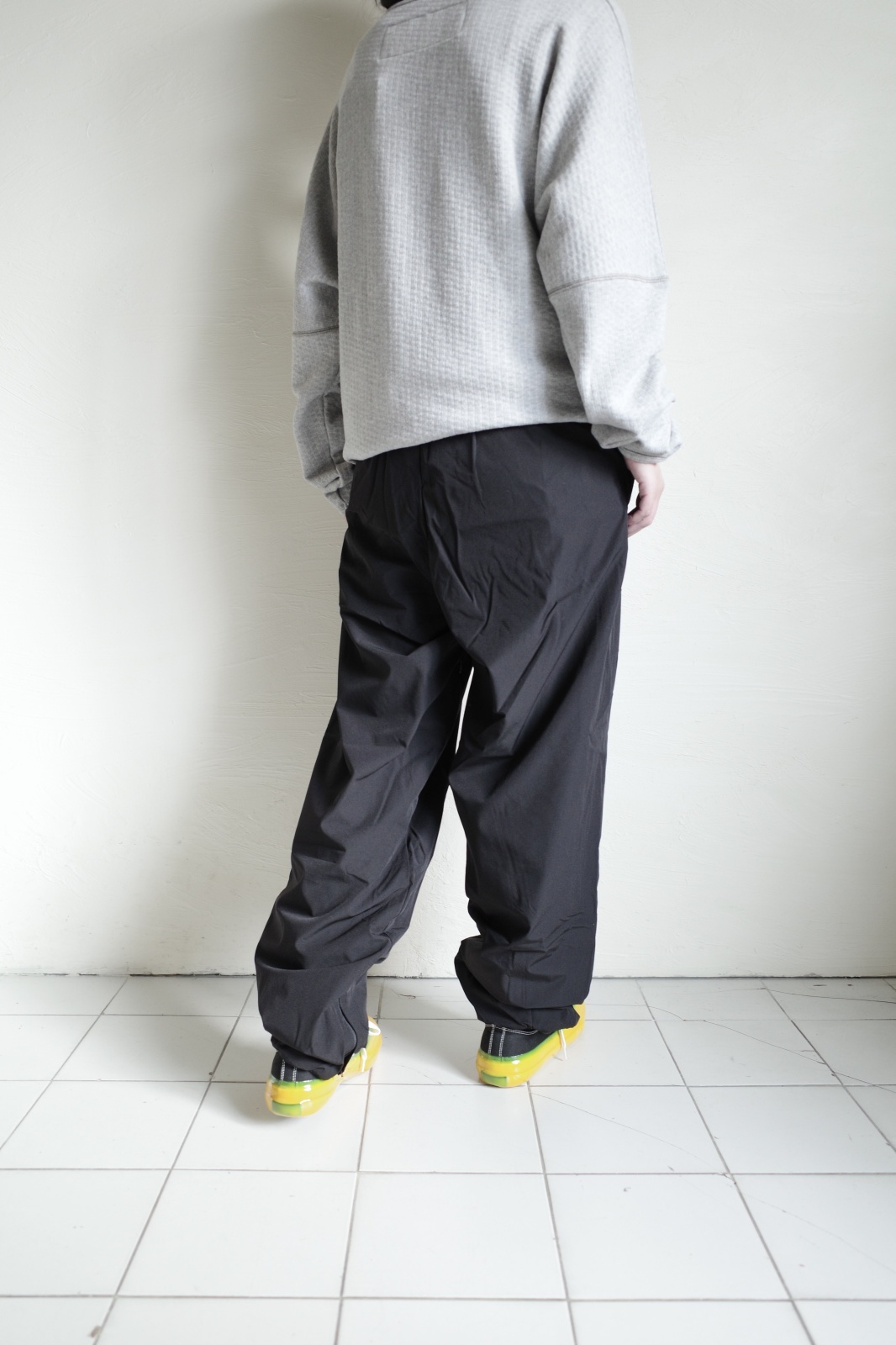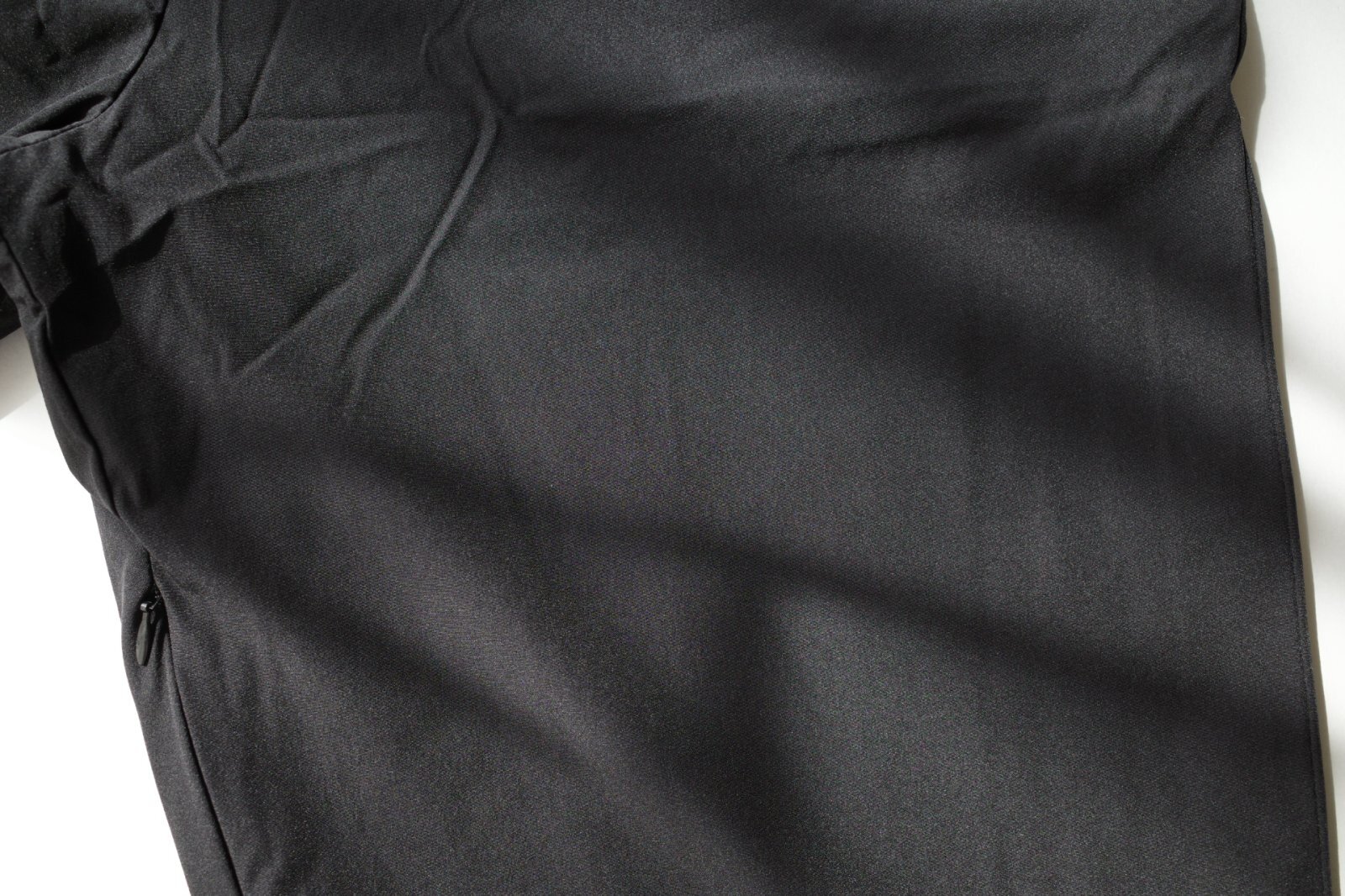 ストレッチソフトシェル素材+フリース裏地のとても暖かいパンツ、シワの起きにくい素材なのでテックパンツというよりも、クリースの無いスラックスのようなドレッシーな雰囲気で、機能的でありあがらとてもファッショナブルです。裾にファスナー開きを付けたので、シューズのバランスに応じて開いたり、少しのベンチレーションとして機能します。ウエストはゴム&ドロストでストレスフリー。サイドにもコンシールファスナーを走らせてポケットに。UNISEXアイテム。個々で風合い・サイズに差がある場合がありますがご了承くださいませ。