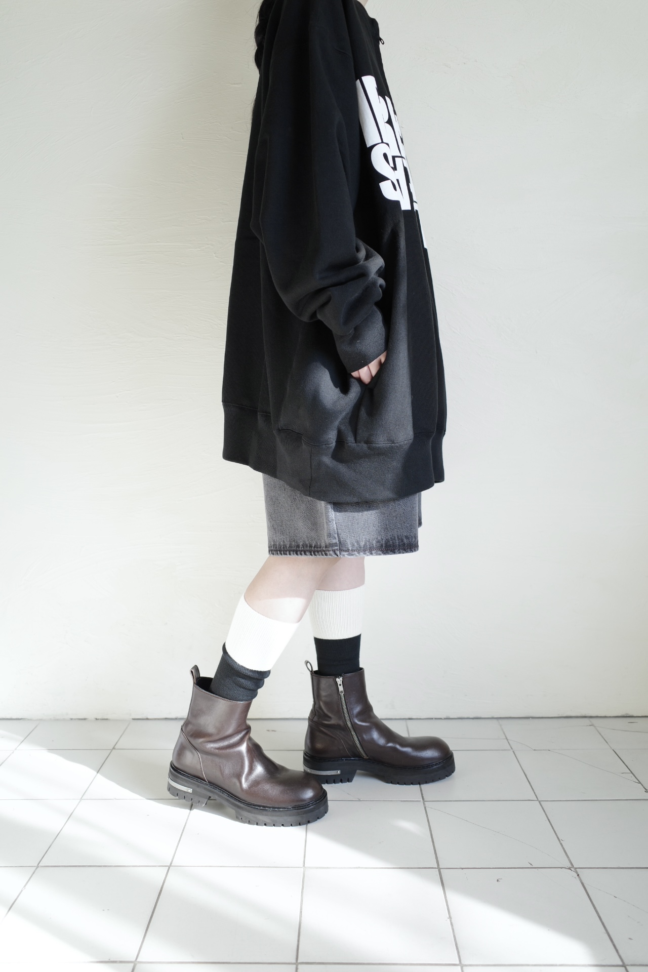- > blackmeans irregular ビッグスウェットブルゾン