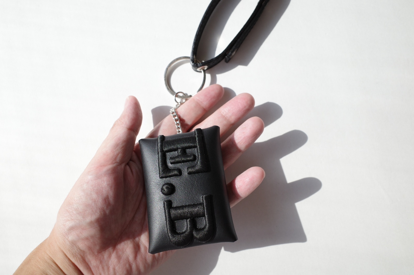封筒型ポーチ付きキーホルダー。スナップボタン付きのストラップ仕様。ストラップは大きめで手首にぶら下げる事が出来ます。ブランドロゴを3D立体刺繍で表現。封筒の中には丸カンと鍵が付いてきます。様々なアイテムにセットしてポイントを作れるキーホルダー。UNISEXでご利用いただけるるモデル。