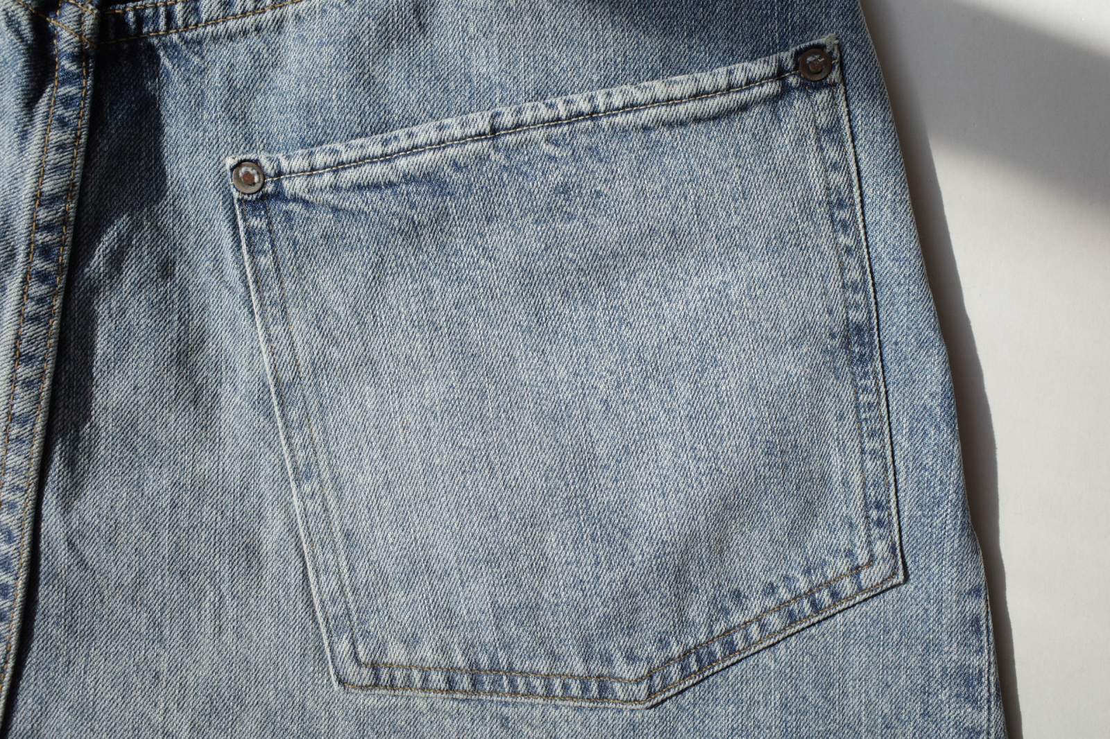 デニム生地は防縮加工を施さず右綾で捻れる方向に先にツイストさせたパターン構成で構築。細かいディティールはオリジナルを忠実に踏襲しさらにそこからアレンジを加えることによってシルエットやサイジング・デザインは他ブランドにはない雰囲気を作っています。UNISEXアイテム。特性状個々で風合い・サイズに若干の差がある場合がありますご了承くださいませ。