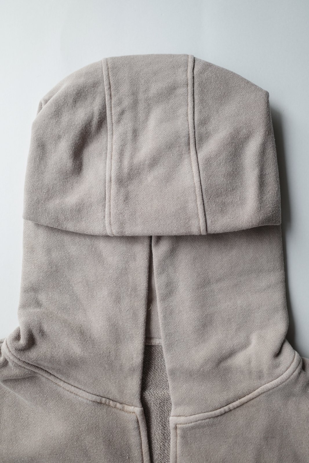 コットンで織り上げたスウェット生地にピグメントダイ・バイオ加工を施しました。色落ちがあり着古したような風合いが特徴です。裏面はバックパイルで肌馴染みが良いです。