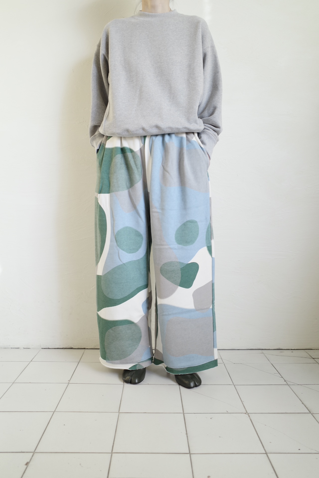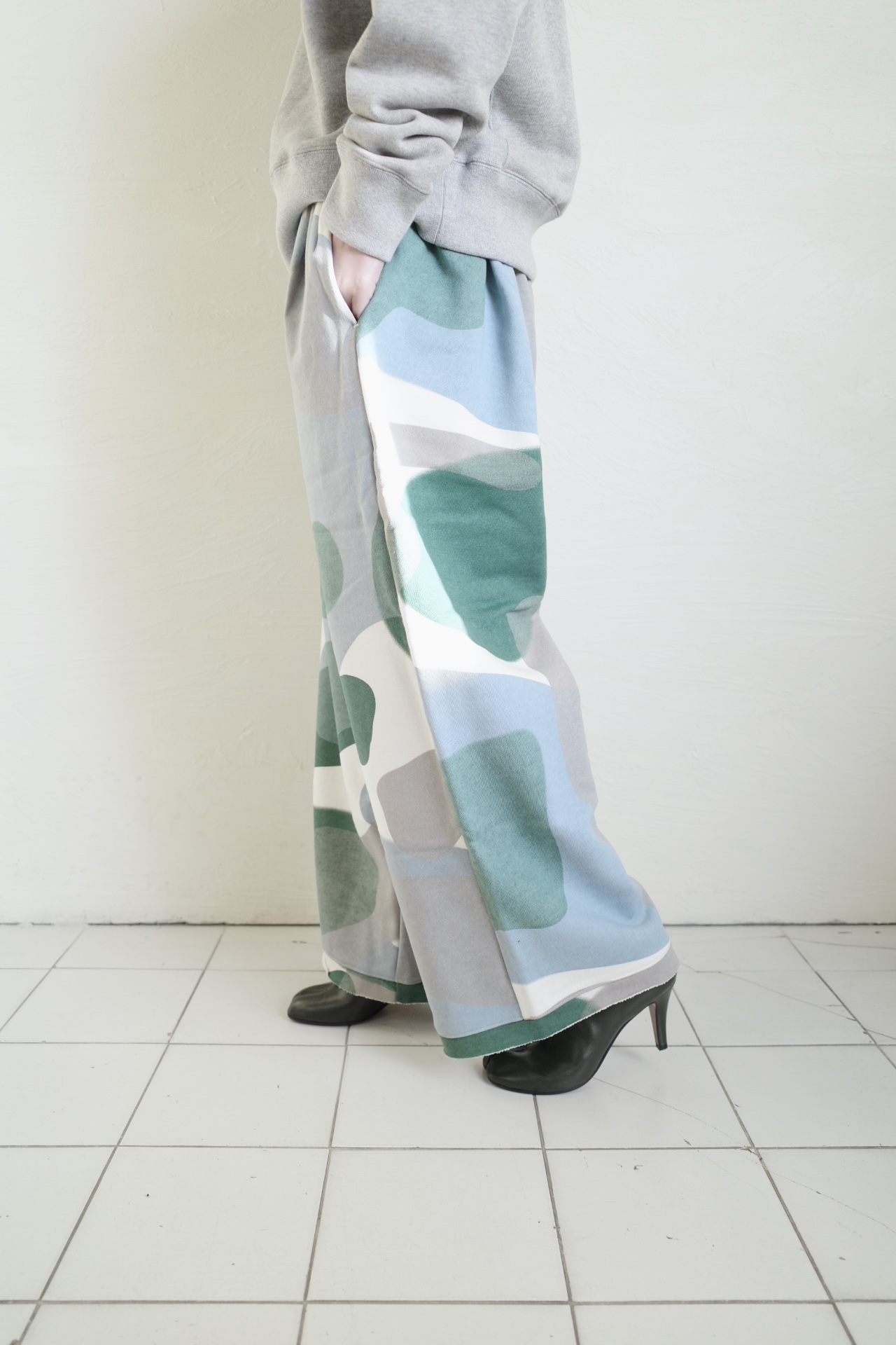 ゆったりとしたワイドシルエットのスウェットパンツ。ウエスト接ぎで切替てポイントに。イージー仕様なのでフィット感のある着心地とともに幅広い体型をカバーしてくれます。液体や泡などの流動的で不定形な形を大判のシルクスクリーン印刷機で総柄に落とし込んでいます。ラバライトやリキッドライト、シャボン玉の表面の模様なども連想させます。Dulcamaraがこだわったカラー配色で描かれた模様。スタイリングに落とし込みやすい色合いにまとめ上げました。UNISEXアイテム。生地の特性状個々で色合い・サイズに若干差がある場合がありますご了承ください。