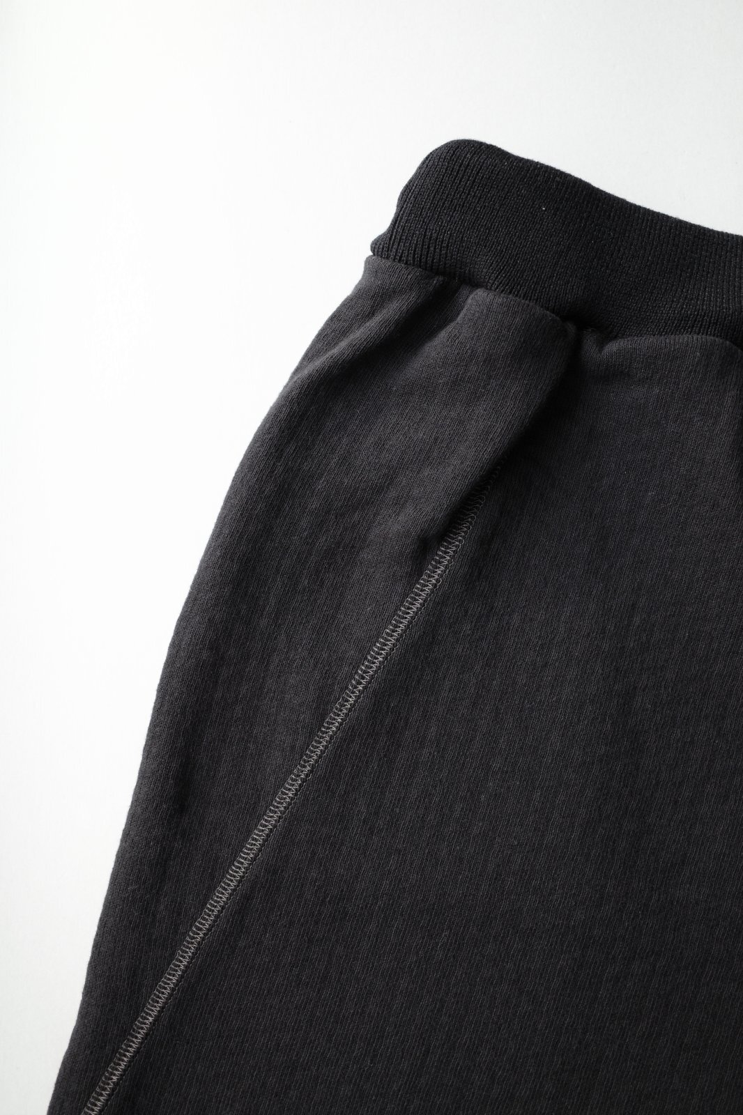 凹凸感のあるランダムな表面の杢調の表情が印象的な裏毛パイル生地を使用。素材感のある表面とは裏腹に、フワッとしたソフトな肌触りはストレスフリーで着用可能です。