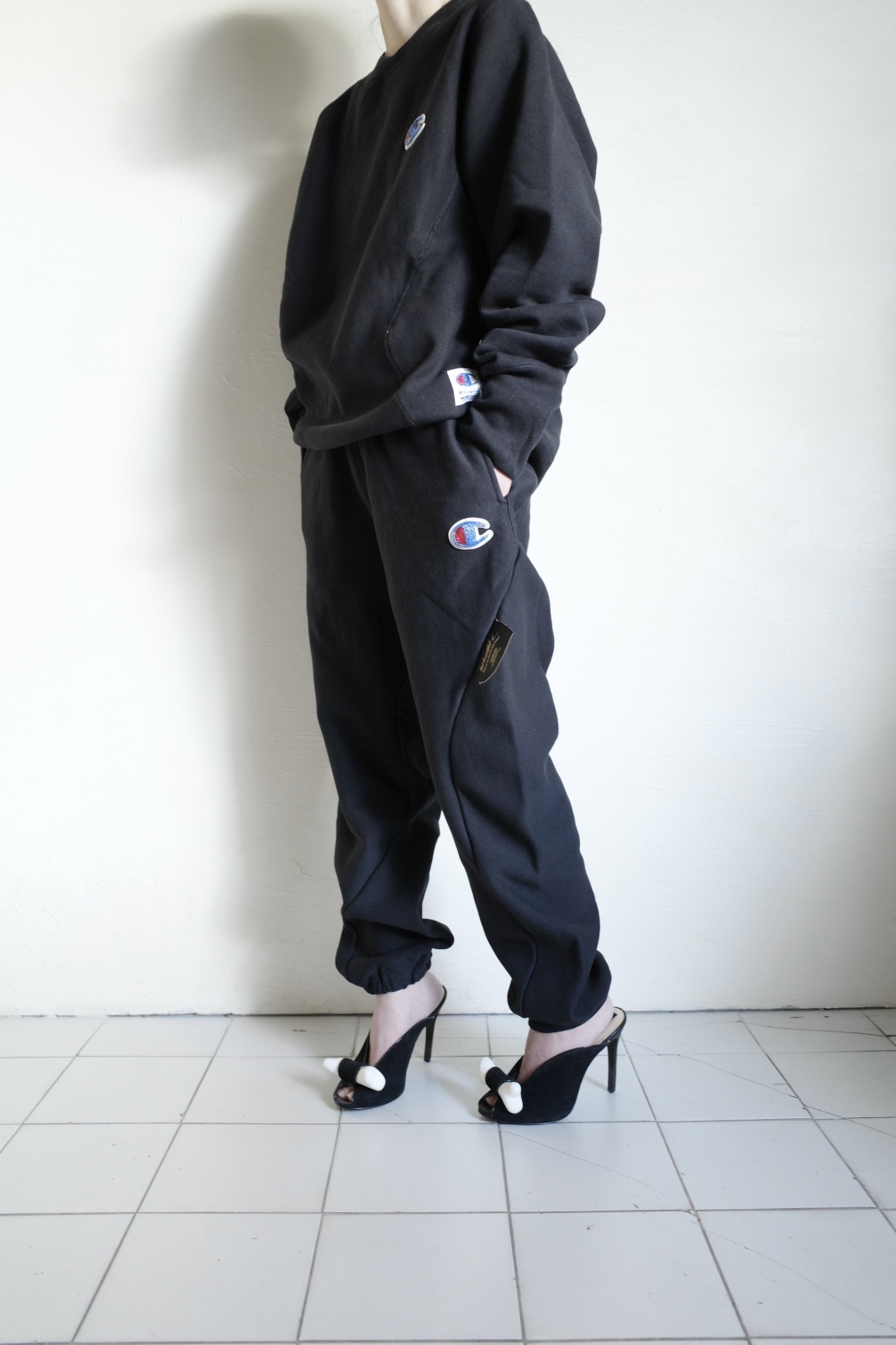 パリで行われたUNDERCOVER 2025年秋冬ウィメンズコレクションのショーに登場した、パーカやスウェットパンツなどのアイテム。前回のコラボレーションと同じくChampionを象徴する「リバースウィーブ」を採用し、生地の厚みを10ozから11.5ozにアップデートしました。肉感もしっかりと、表面はドライな手触り。裏地はふんわりと起毛していて保湿性も高いスウェット生地。