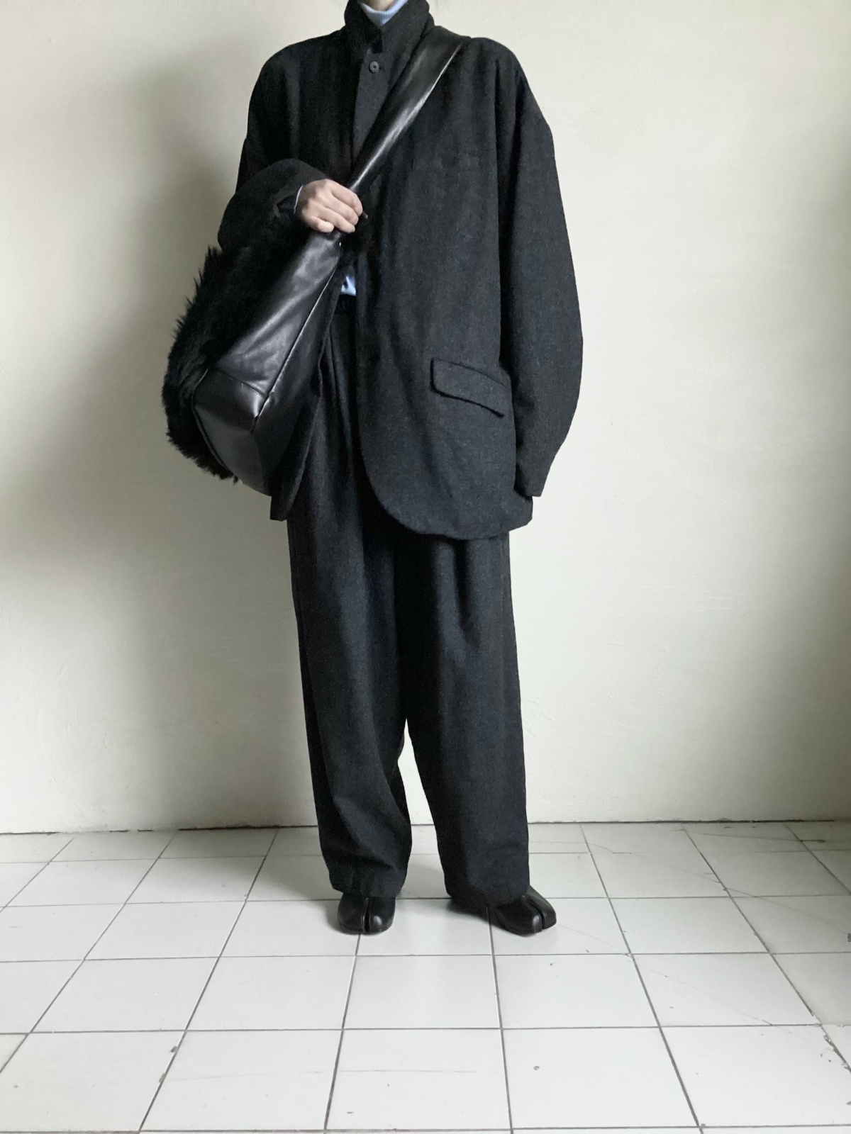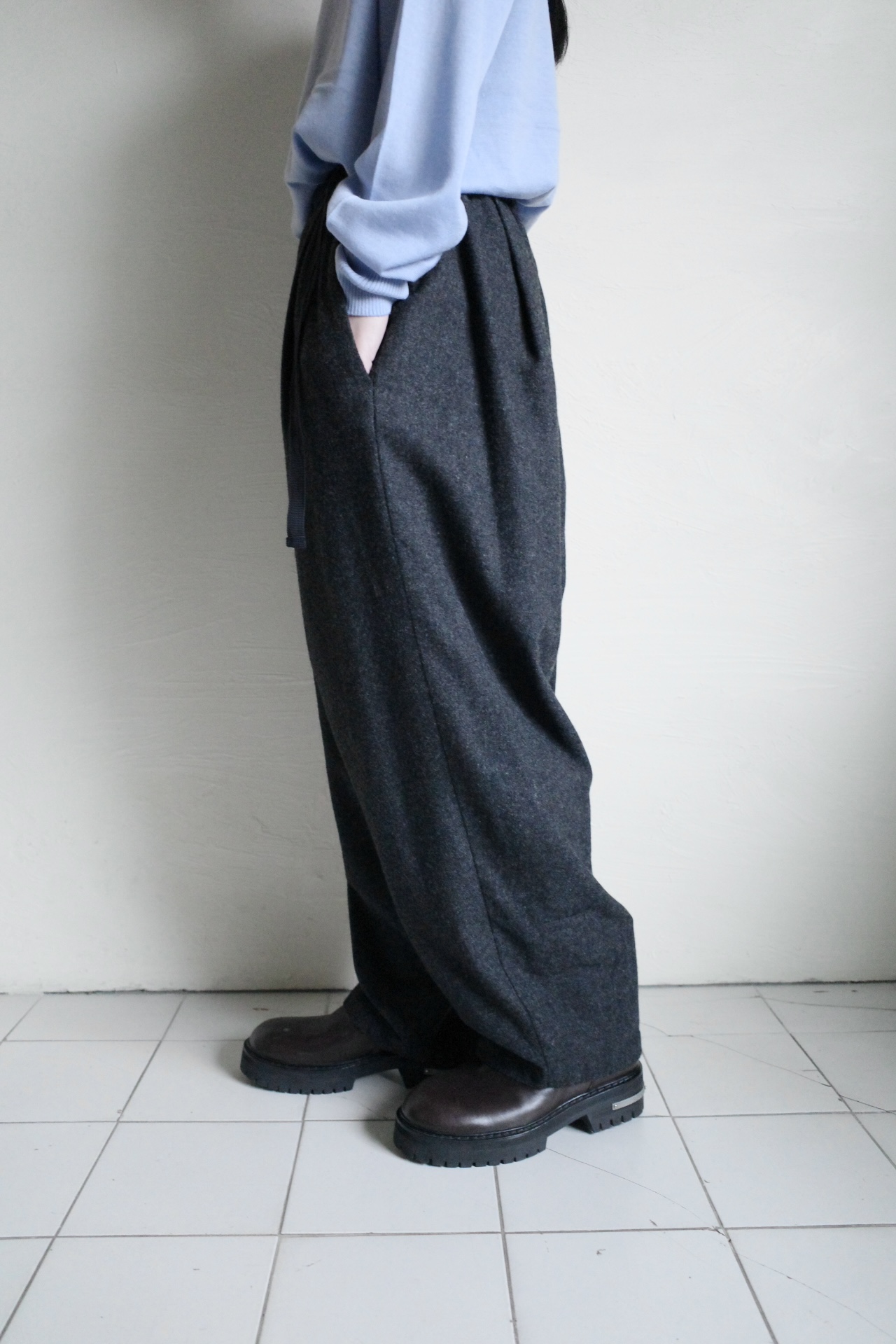 Dulcamara 縮絨ウールタックワイドパンツ・チャコールグレー