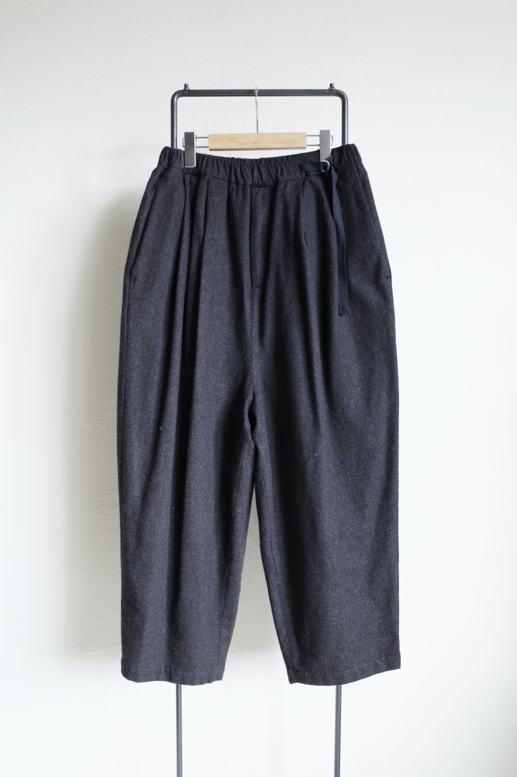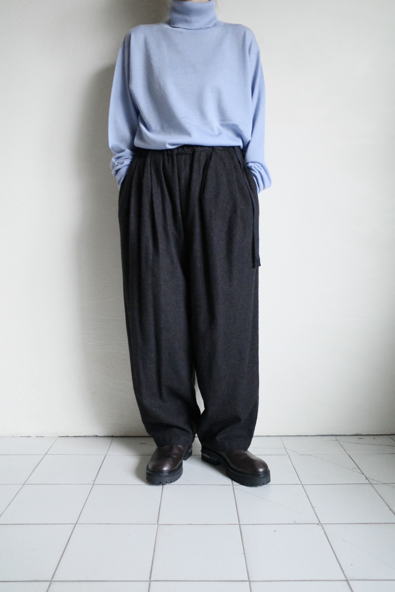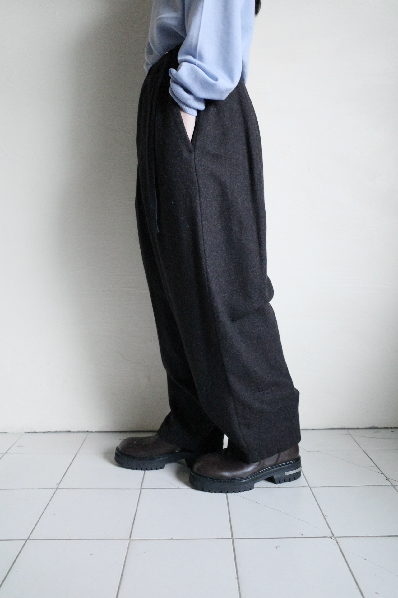 Dulcamara 縮絨ウールタックワイドパンツ・ダークブラウン