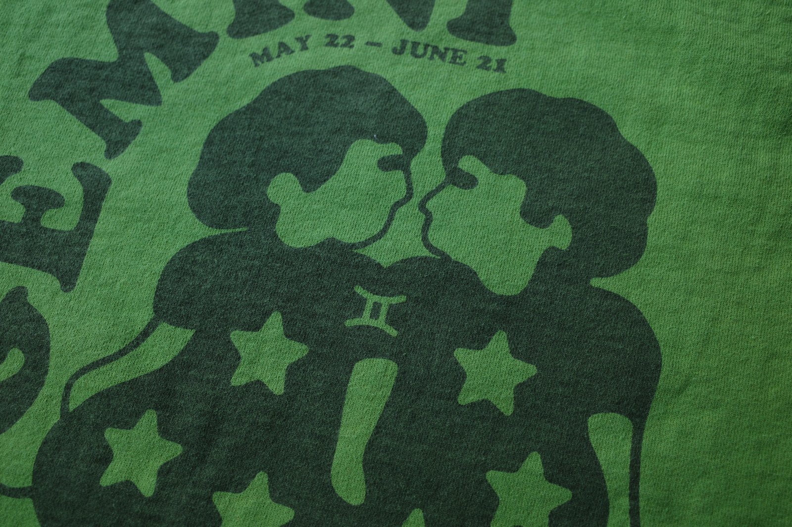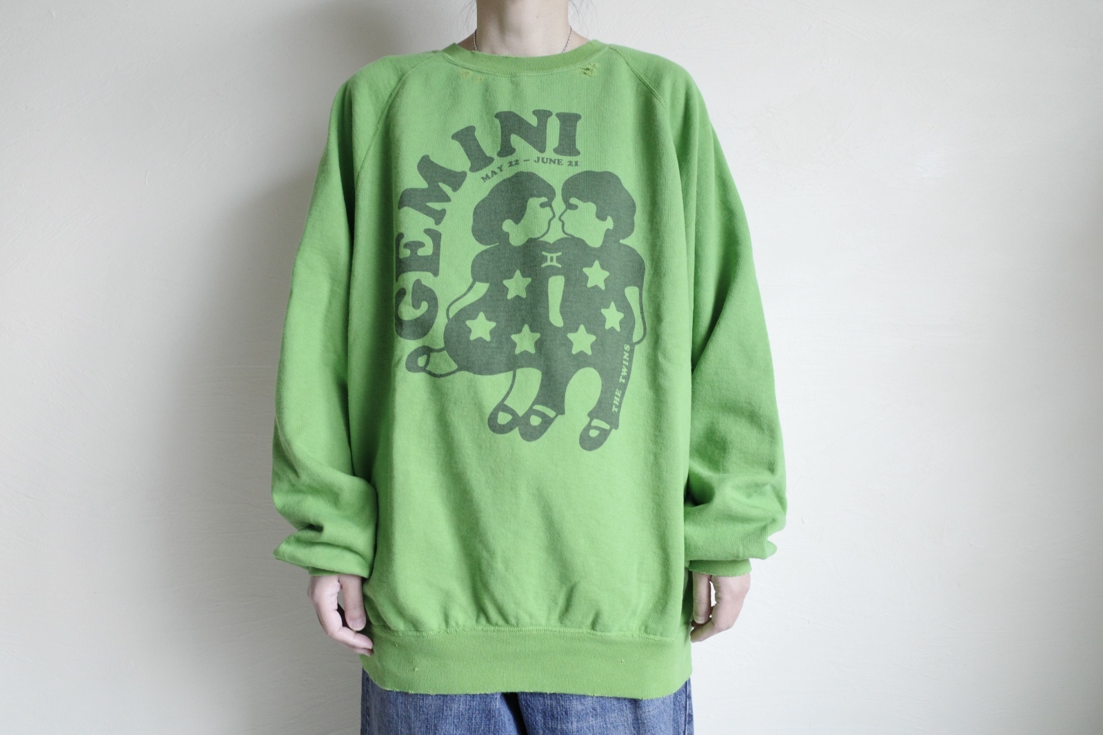 旧式の吊り編機を使用し、ヴィンテージのBEETHOVENやSNOOPYシリーズのボディになっているSPRUCE社製スウェットの縫製方法を踏襲し、全体にヴィンテージ加工を施して独特な雰囲気に仕上がっています。大塚黎氏がコレクションしたヴィンテージの12星座の柄すべてを捻れや縮みなど細かく分析し再現したスペシャルシリーズです。UNISEXで着用していただけます。生地の特性上個々で風合い・サイズに差がある場合があります。