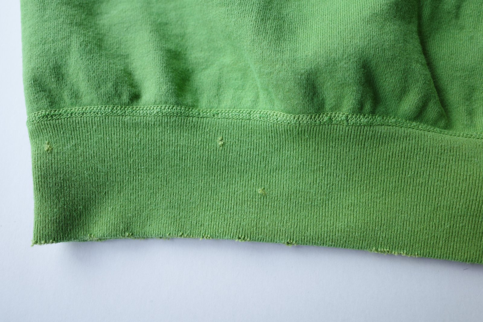 トップス。コットン100%。USAコットンのオリジナル丸胴生地を使用。ヴィンテージのミリタリースウェットの雰囲気まで旧式の吊り編み機で踏襲した裏毛生地。ゆっくりと吊り編機で編み上げています。空気を含みながら編むことで仕上がった生地はふわりと柔らかく温かみも感じられます。優しいタッチで着込んでいくことでより肌になじんでいきます。