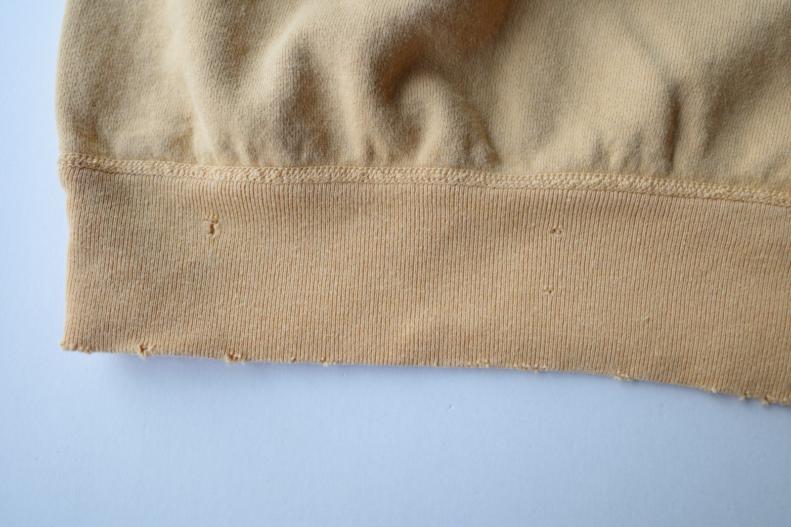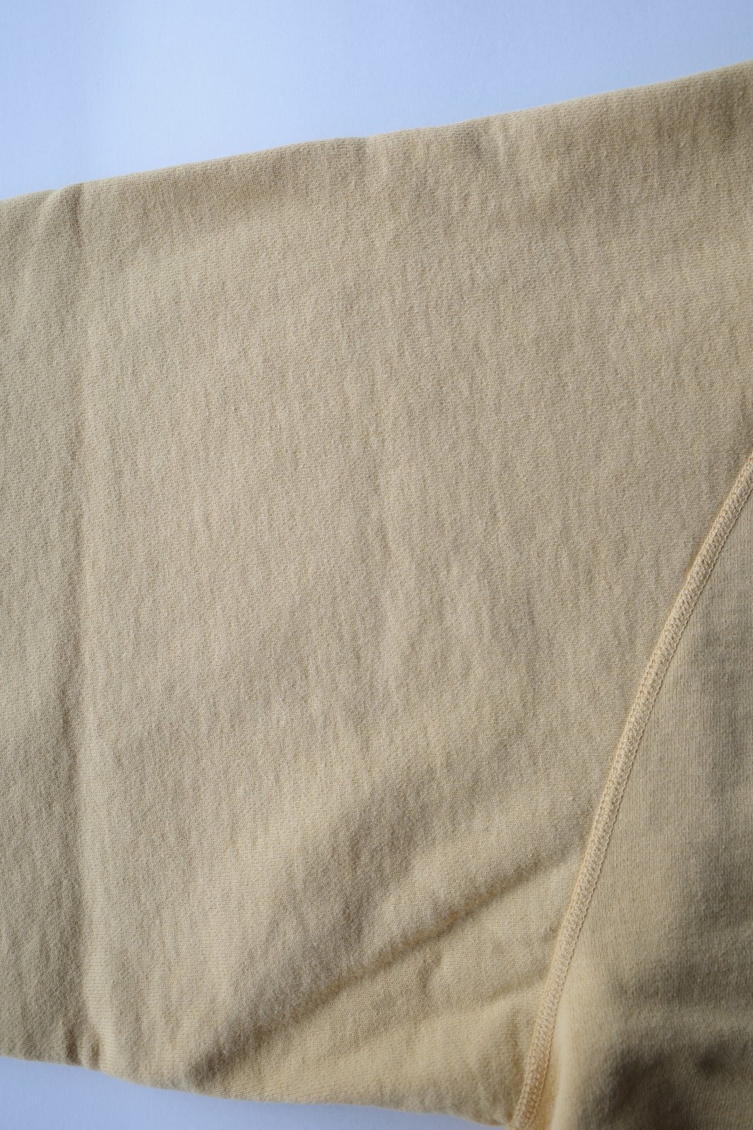 トップス。コットン100%。USAコットンのオリジナル丸胴生地を使用。ヴィンテージのミリタリースウェットの雰囲気まで旧式の吊り編み機で踏襲した裏毛生地。ゆっくりと吊り編機で編み上げています。空気を含みながら編むことで仕上がった生地はふわりと柔らかく温かみも感じられます。優しいタッチで着込んでいくことでより肌になじんでいきます。