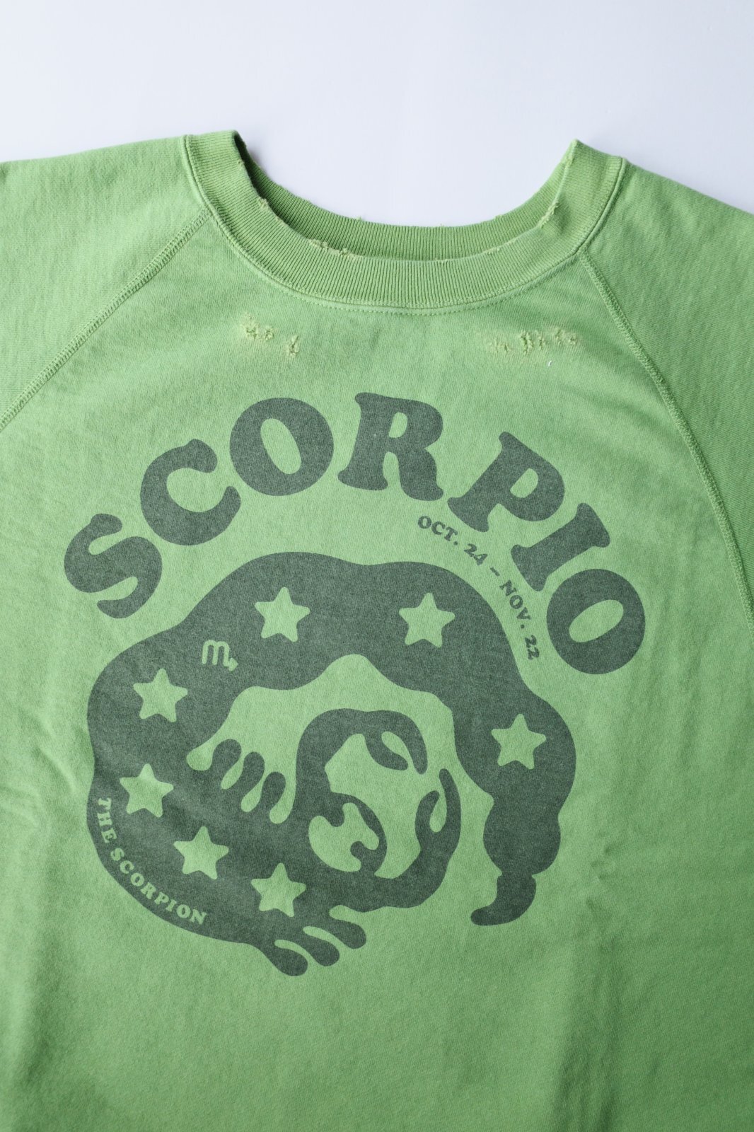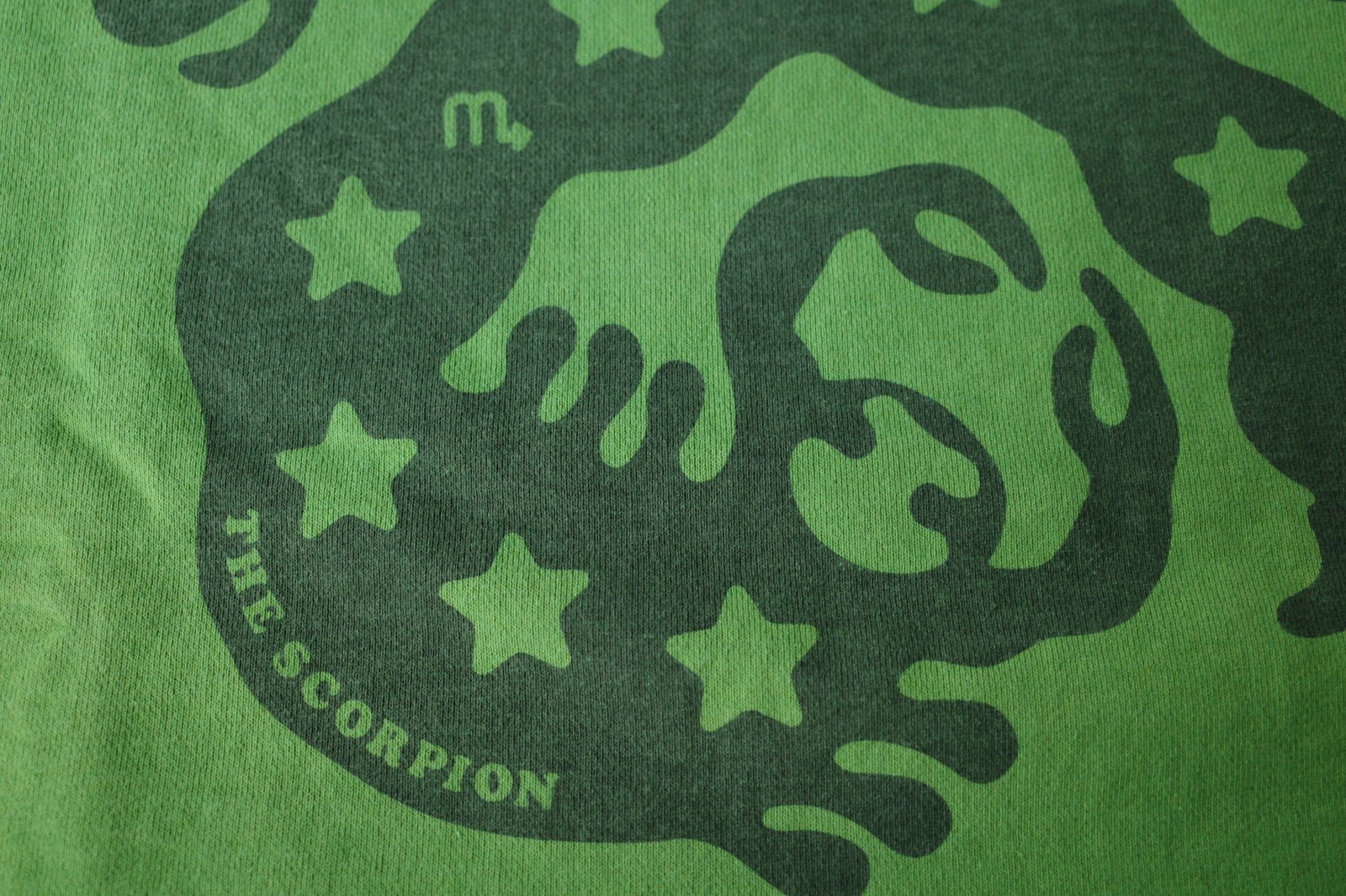 旧式の吊り編機を使用し、ヴィンテージのBEETHOVENやSNOOPYシリーズのボディになっているSPRUCE社製スウェットの縫製方法を踏襲し、全体にヴィンテージ加工を施して独特な雰囲気に仕上がっています。大塚黎氏がコレクションしたヴィンテージの12星座の柄すべてを捻れや縮みなど細かく分析し再現したスペシャルシリーズです。UNISEXで着用していただけます。生地の特性上個々で風合い・サイズに差がある場合があります。