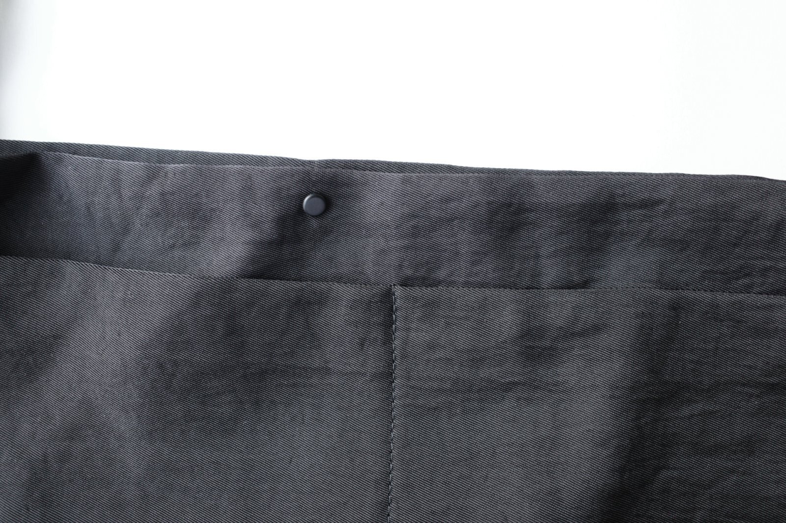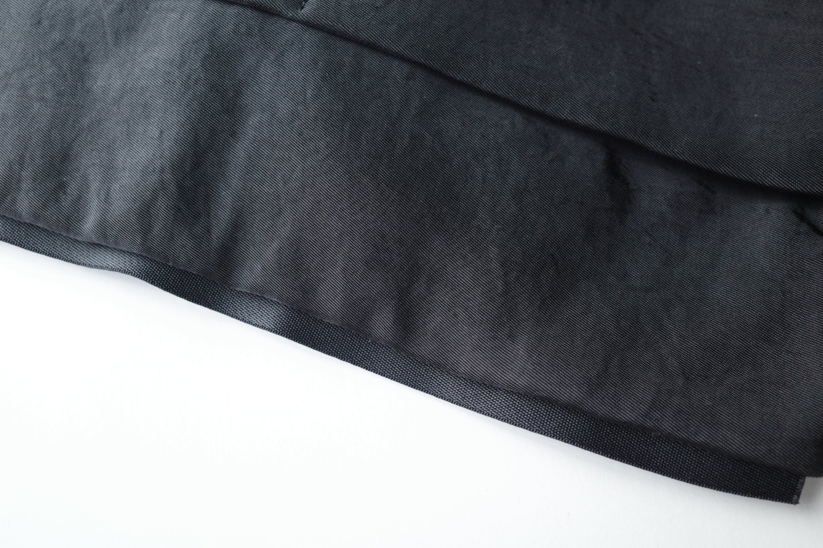 通常ジッガーで染めるナイロンツイルをあえて液流染色にすることで生地全体にナチュラルな皺ができ、ヴィンテージ感ある風合いになります。仕上げに撥水加工を施してより使いやすいテキスタイルに。
