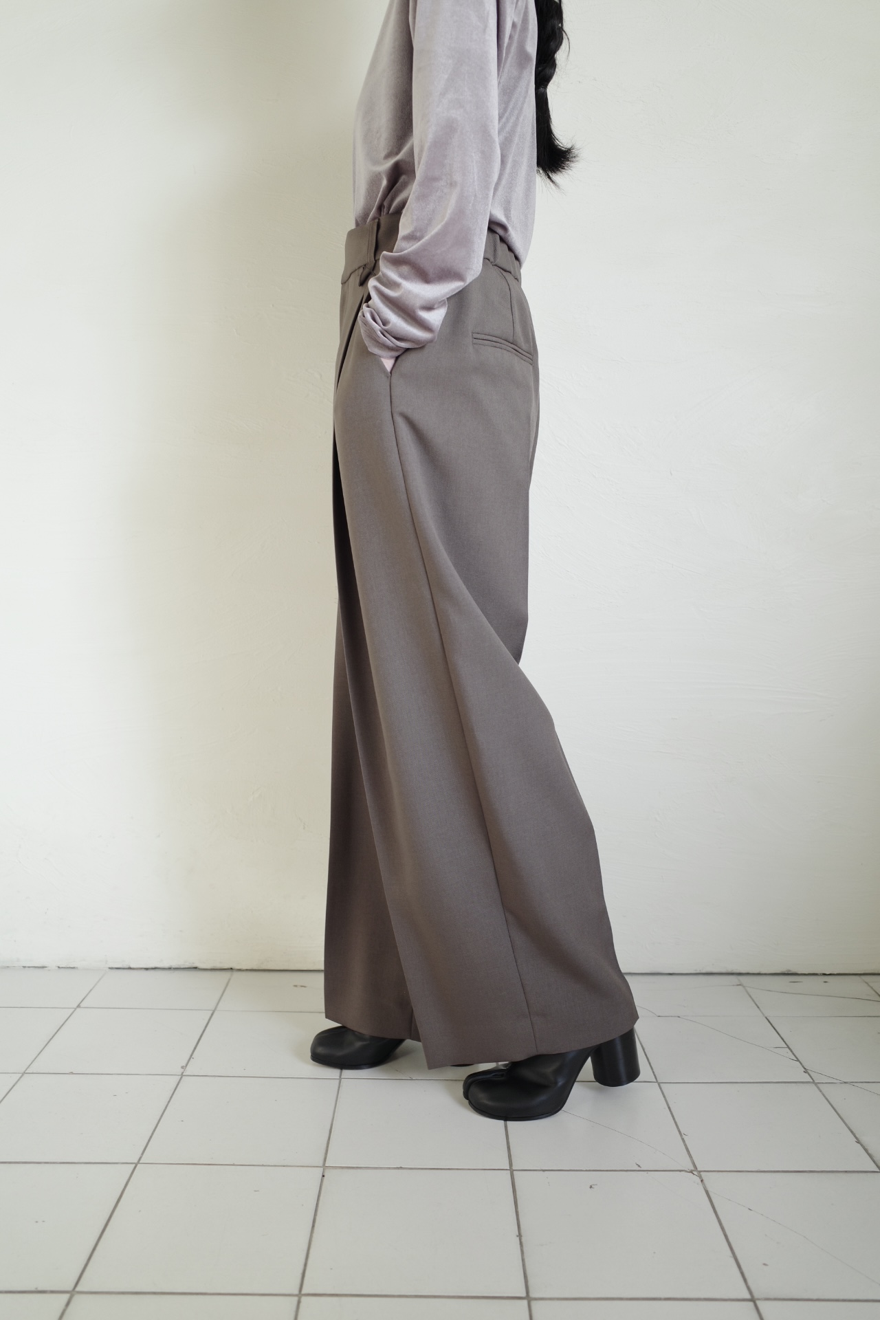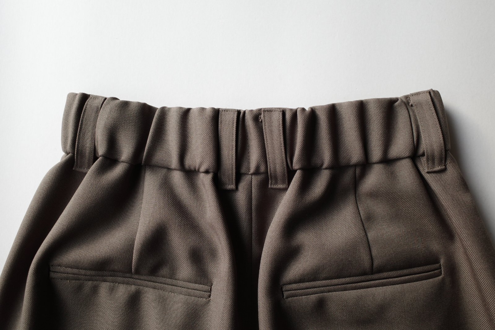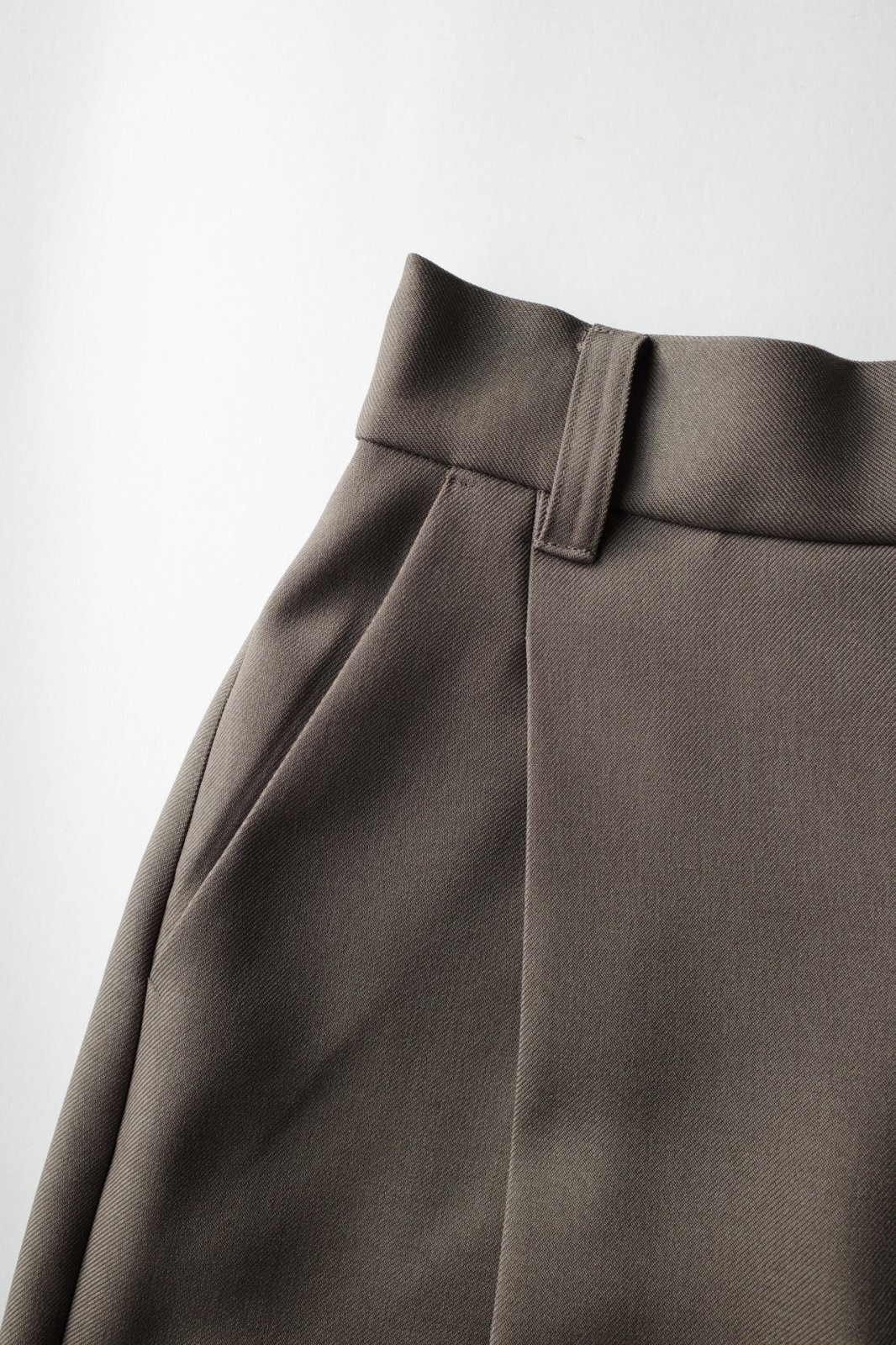 ANTHEM A アンセムエー パンツ。65%WOOL 35%RAYON 素材には、とても珍しいウールレーヨントロピカルを使用。経糸を75D/1強撚レーヨンフィラメントにすることで、反発感を残…