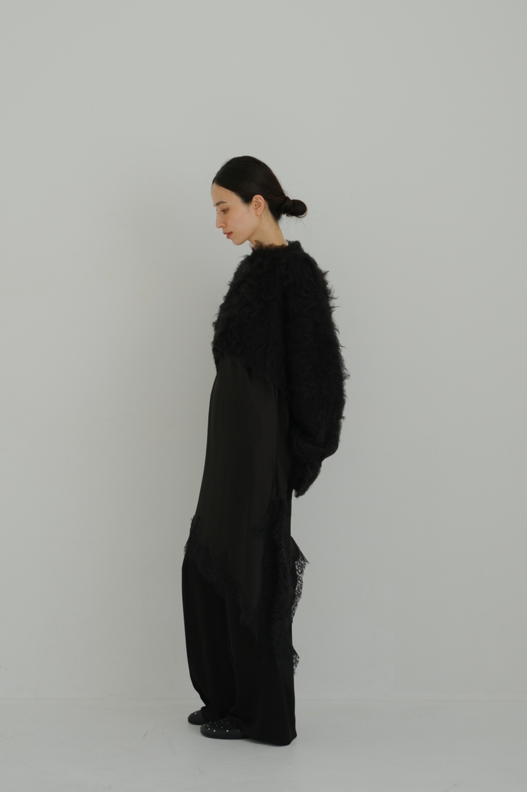 IFMEH Shaggy knit tops・black