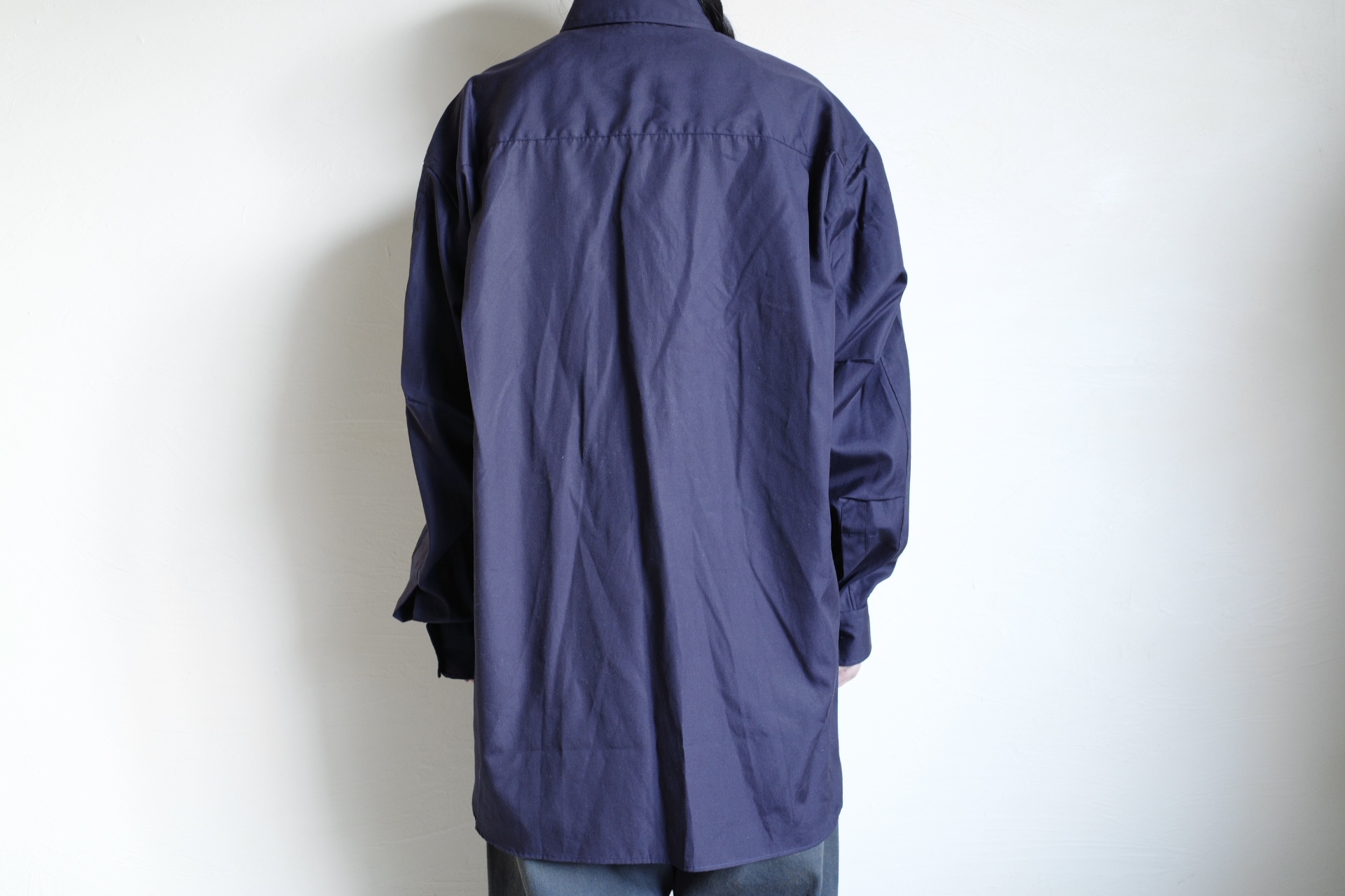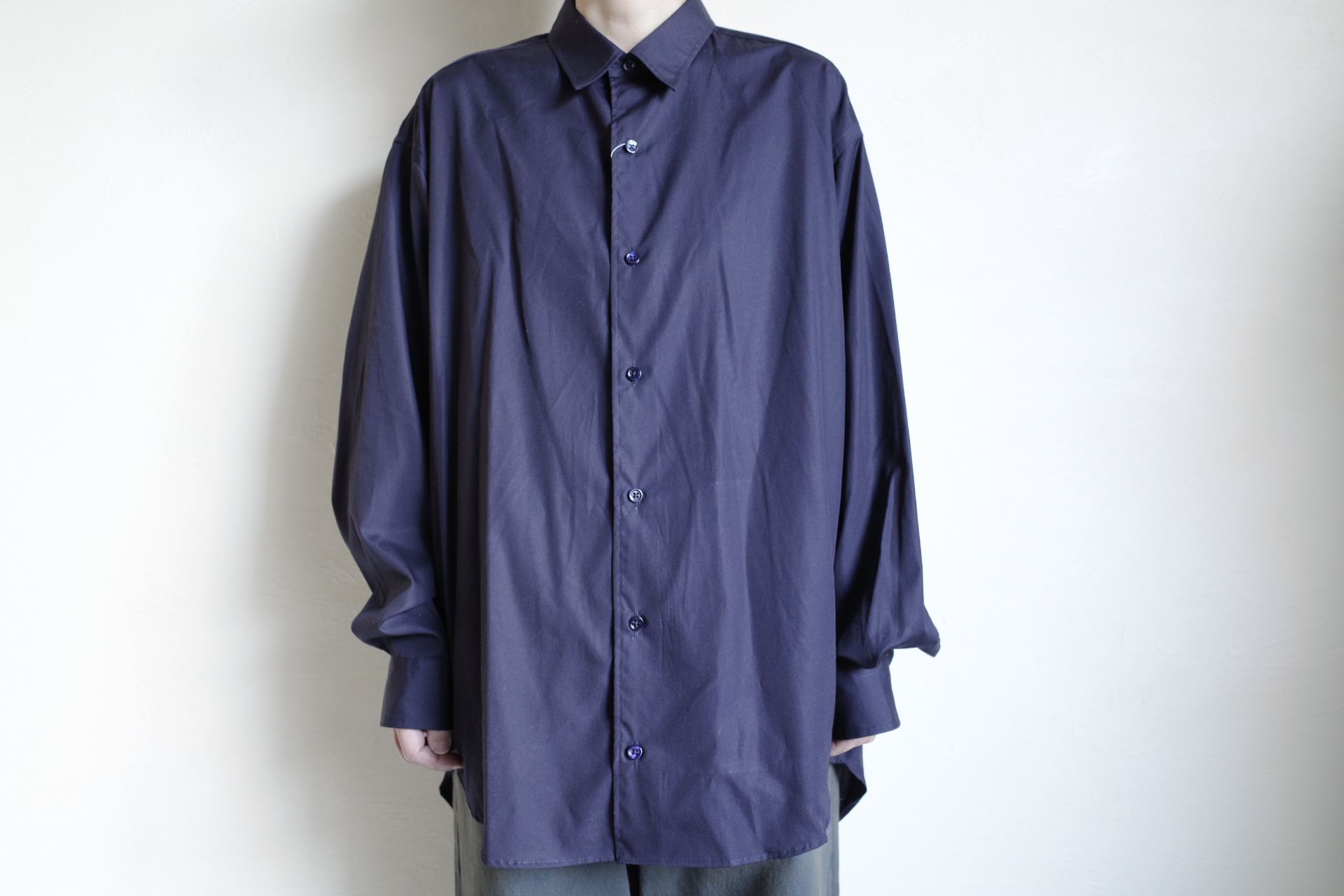 他のシャツ素材では表現できない、ブロードならではのきれいな立ち上がりとシルエットを活かした設計。ボタンは生地色に合わせて製品染めした貝ボタンを使用し、品よくなじむディテールに。ステッチやパターンはミニマルに抑え、素材の質感が際立つバランスにまとめた一着。