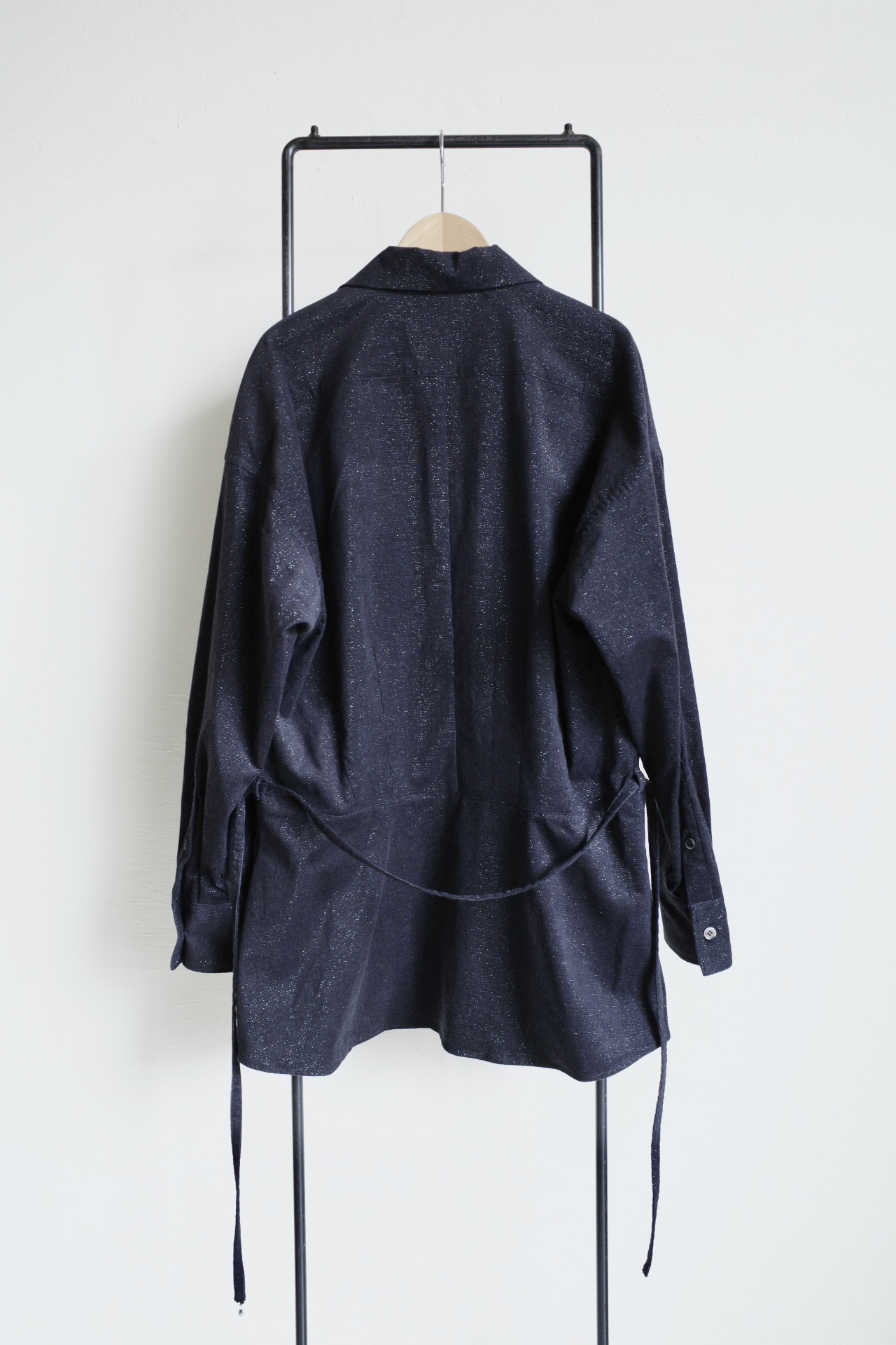 fluss shawl collar shirt with peplum・navy glitter