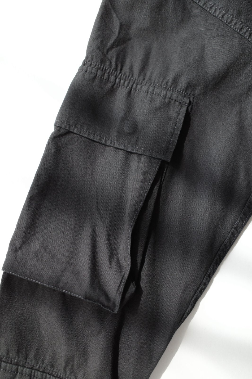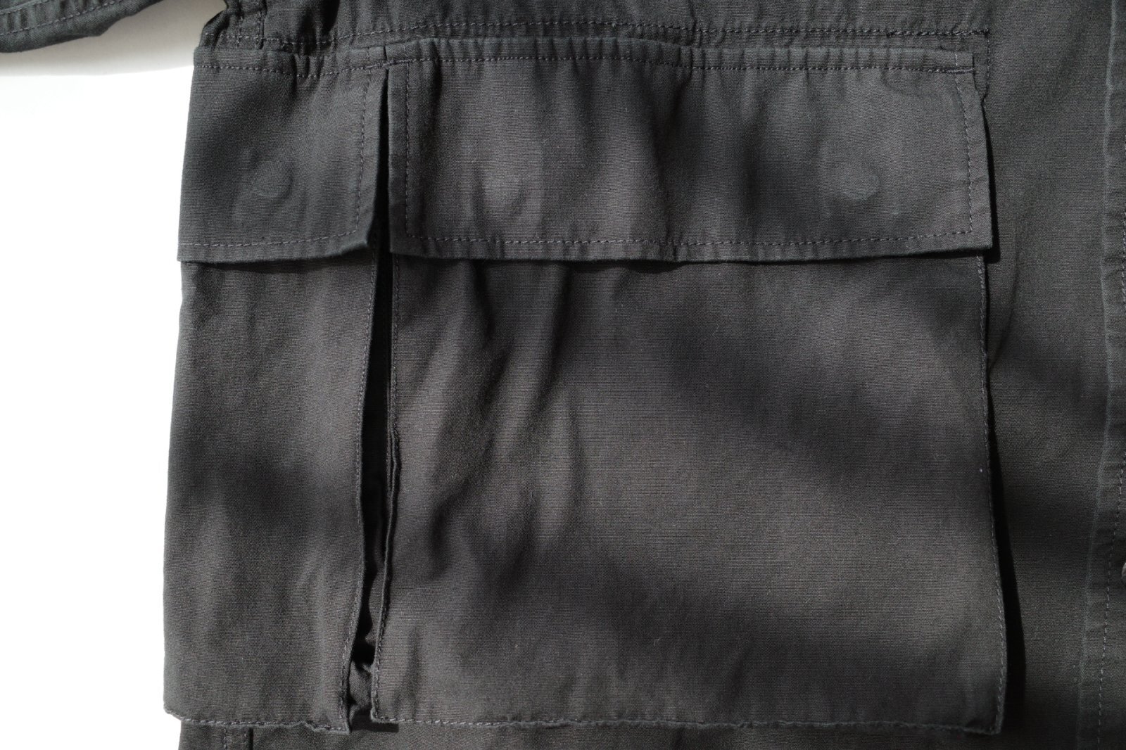 BDUシャツ。幾つものポケットを様々な個所に配置。b.d.uポケットを採用したmilitaryシャツ。バックにはフラップ仕様のマガジンポケットついてます。裾はマチ付きの緩やかにラウンドさせたヘムライン。身幅はややゆったりで軽い羽織りとしても重宝しそう。製品後にハードな加工を施していて生地にアタリ・シワ・スレ・色落ち等着たおした様な雰囲気に仕上げています。一枚でも存在感あるシャツです。UNISEXアイテム。特性状個々で風合い・サイズに若干の差がある場合がありますご了承くださいませ。