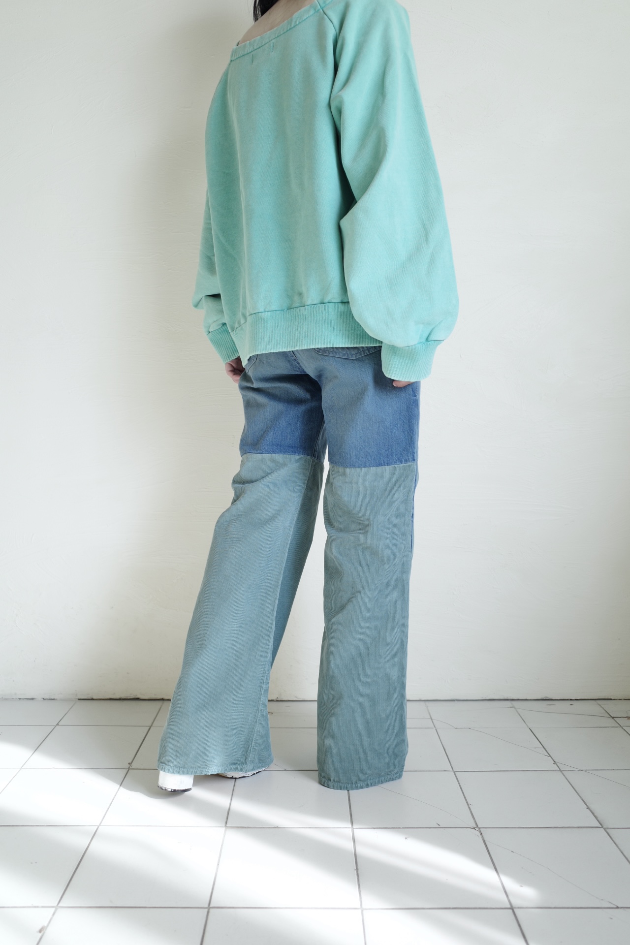 岡山で製作したしっかりとしたデニムテキスタイル。また切り替えてコーデュロイを採用。共に職人が手作業でハードな加工を施して唯一無二な深みのある色と風合いを演出しています。
