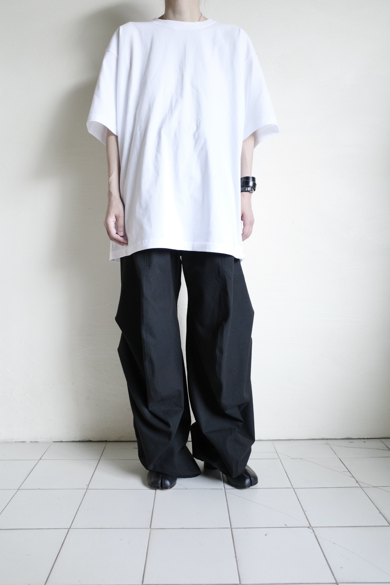 バックに大きなパッチを落とし込んだTシャツ。TOKIOらしいエッジの利いたグラフィックパッチが目を奪います。某バンドのアルバムジャケットからインスパイア。TOKIOが今回賞をいただいた中で周りとはまた違う雰囲気を持っていて外来種の様に感じ一枚のTシャツに落とし込みました。プリントの上に刺繍やビーズを縫い付けて手間をかけました。BODYは丸胴でサイドにシームはなく肌に馴染みやすい一枚です。UNISEXアイテム。特性状個々で風合いやサイズに若干の差がある場合がありますご了承くださいませ。