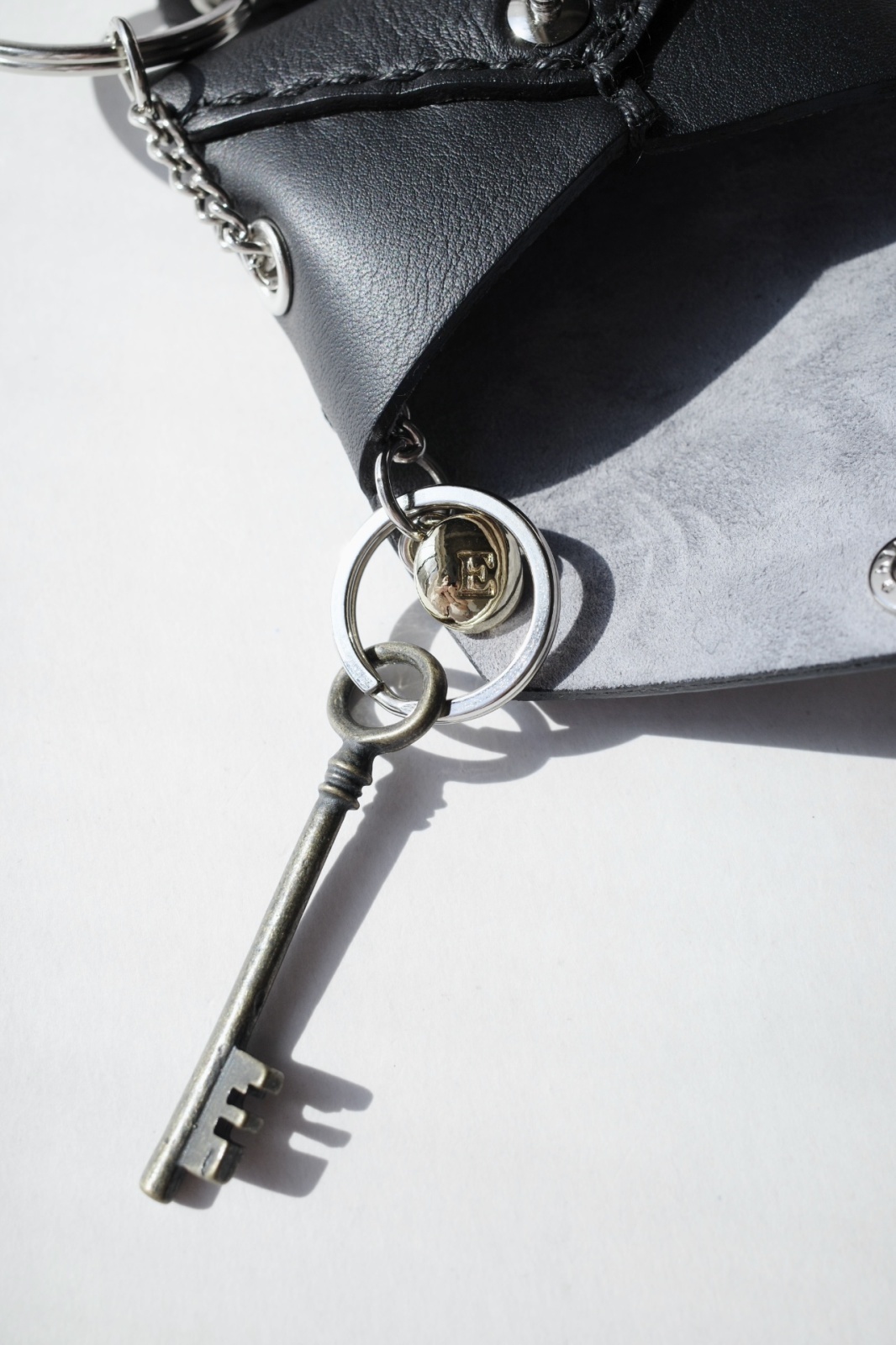 封筒型ポーチ付きキーホルダー。スナップボタン付きのストラップ仕様。ストラップは大きめで手首にぶら下げる事が出来ます。ブランドロゴを3D立体刺繍で表現。封筒の中には丸カンと鍵が付いてきます。様々なアイテムにセットしてポイントを作れるキーホルダー。UNISEXでご利用いただけるるモデル。