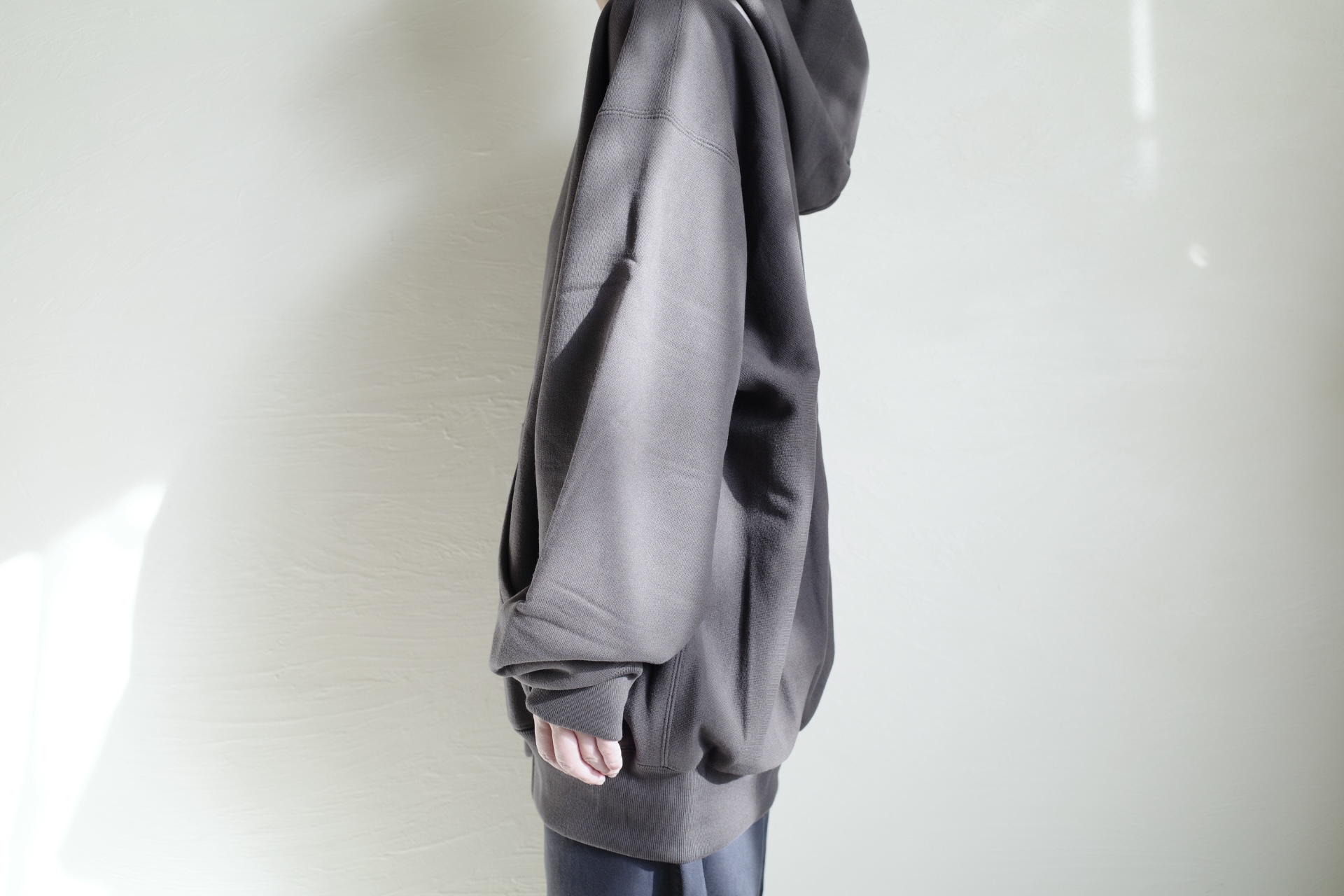 ジップを開けて羽織ればコートライクにも。同素材のスウェットパンツやクルーネックと合わせて統一感あるセットアップもおすすめ。“重さが、美しさになる。”秋冬の主役にふさわしい、品のあるフーディです。