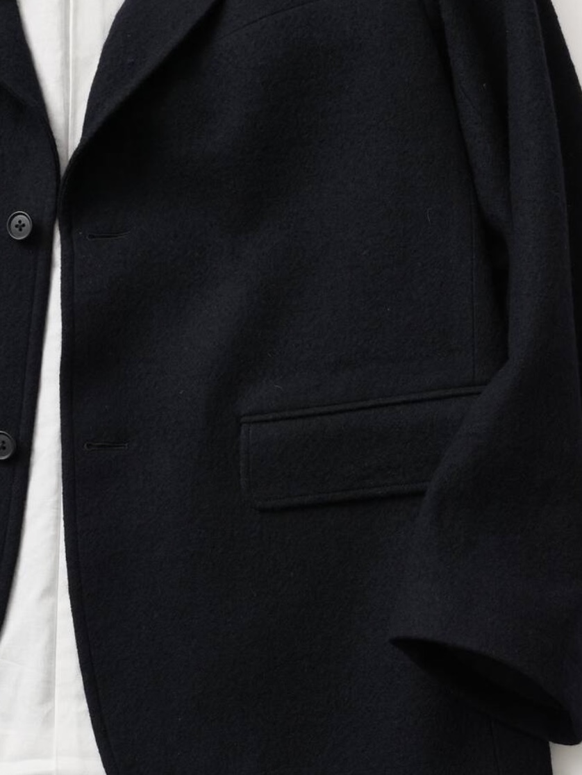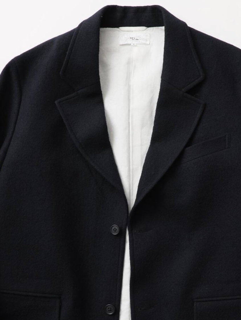 大阪のテーラーによるハンドソーイングシリーズ最新作。シングルのジャケットですが、アイロンワークのみで作ったフロントの段返りの表情や、各所に手作業の工程を入れることで出る柔らかさなど、所有者に馴染む柔らかさを持ったジャケットに仕上げました。堅さや重さを感じない立体的なサイズバランスも特徴です。ウールパンツと合わせてクラシカルに。デニムやチノと合わせてカジュアルダウンにも◎着るほどに愛着が深まる、唯一無二のネイビージャケットです。UNISEXアイテム。特性状個々で風合い・サイズに若干の差がある場合がありますご了承くださいませ。