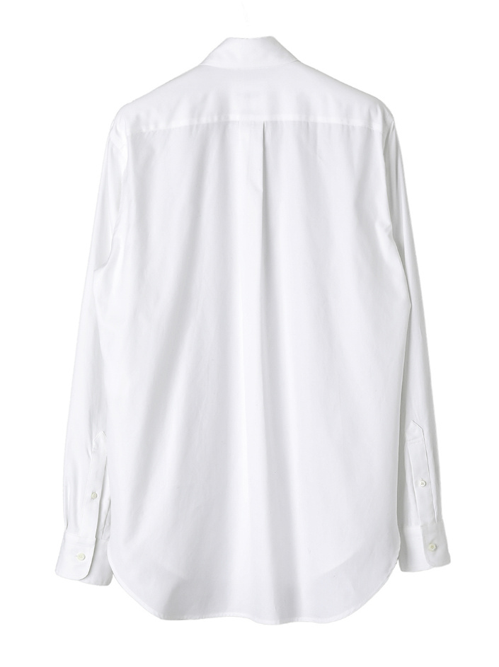 シャツ。コットン100%。通常のオックスフォードより薄く織り上げたテキスタイル。しなやかでとても肌触りの良いオックスフォードです。カジュアルな雰囲気も残しながら綺麗な光沢が上品に演出してくれます。着込んで洗いざらしの雰囲気も良さそうです。