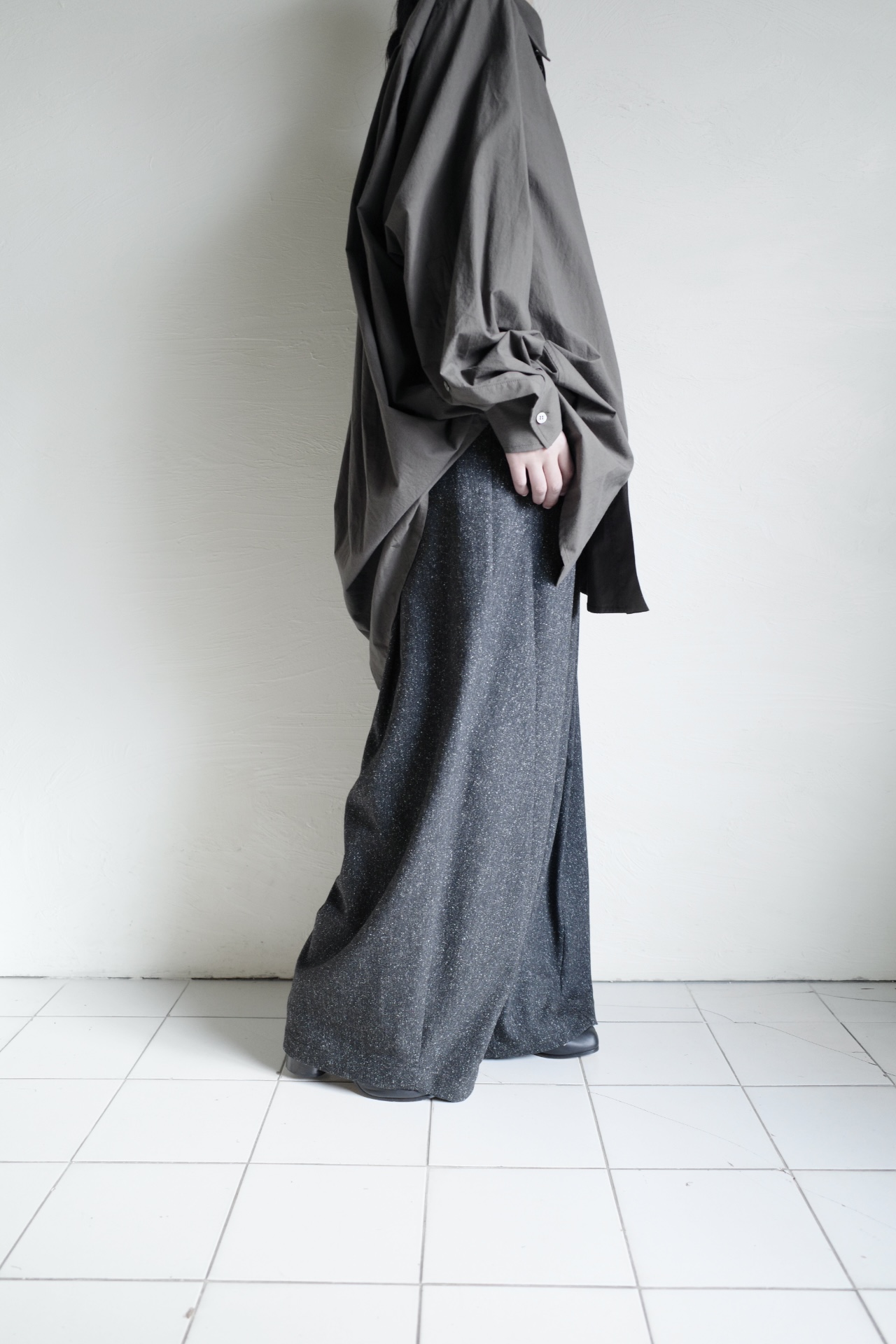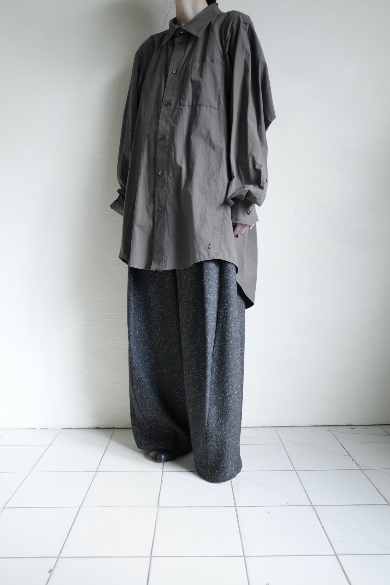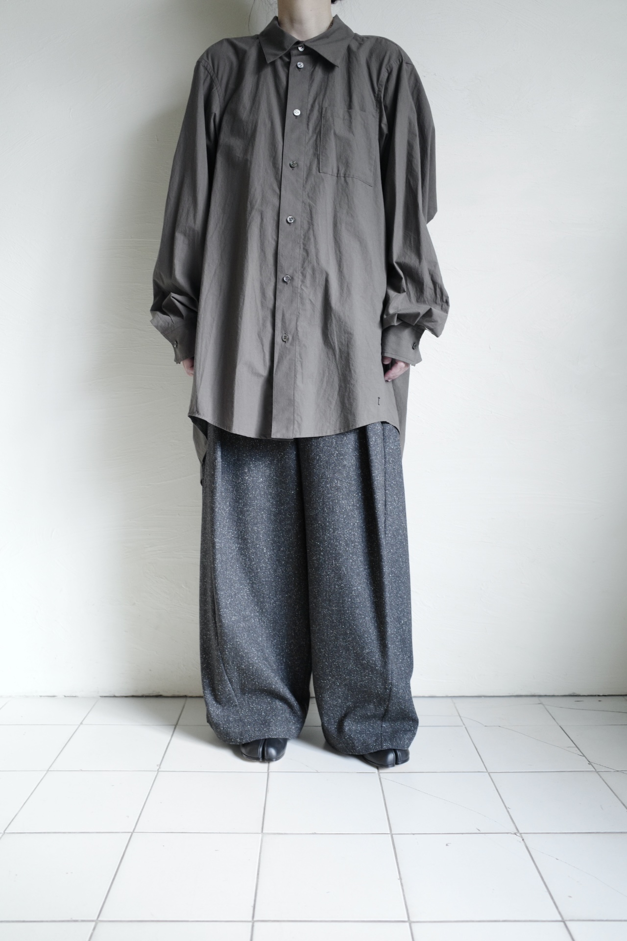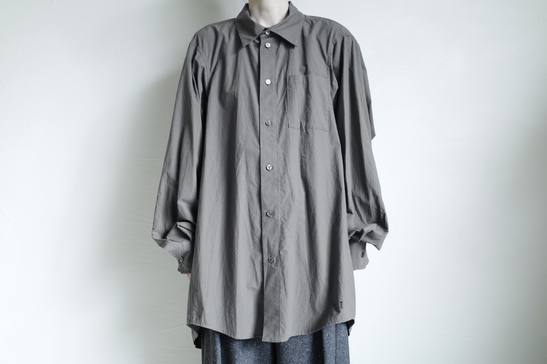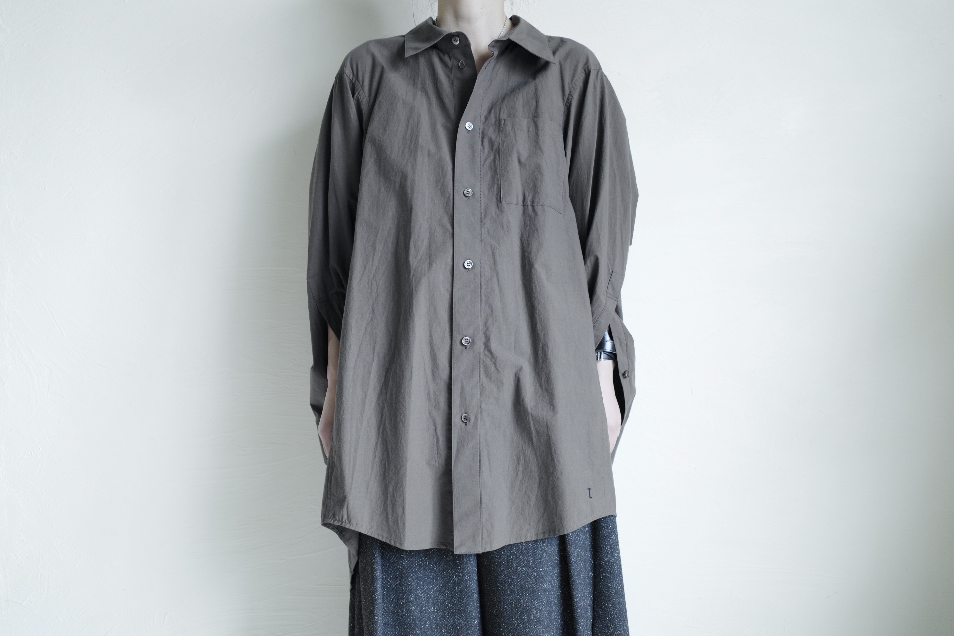 バックスタイルに大胆に施したギャザーが最大のポイントのオーバーシャツ。バック裾は少しダーツをとることで、ふんわりとした他にないバックスタイルを楽しんでいただけます。袖は大きく前に振り、前身頃を狭くすることで他にないシルエットが生まれています。肩や腕の動きにやさしく寄り添うパターンメイキング。身幅はたっぷり身体が泳ぐサイズ感。unisexアイテム。生地の特性状個々で色合い・サイズに若干差がある場合がありますご了承ください。