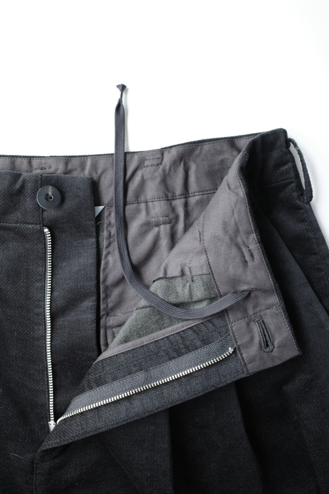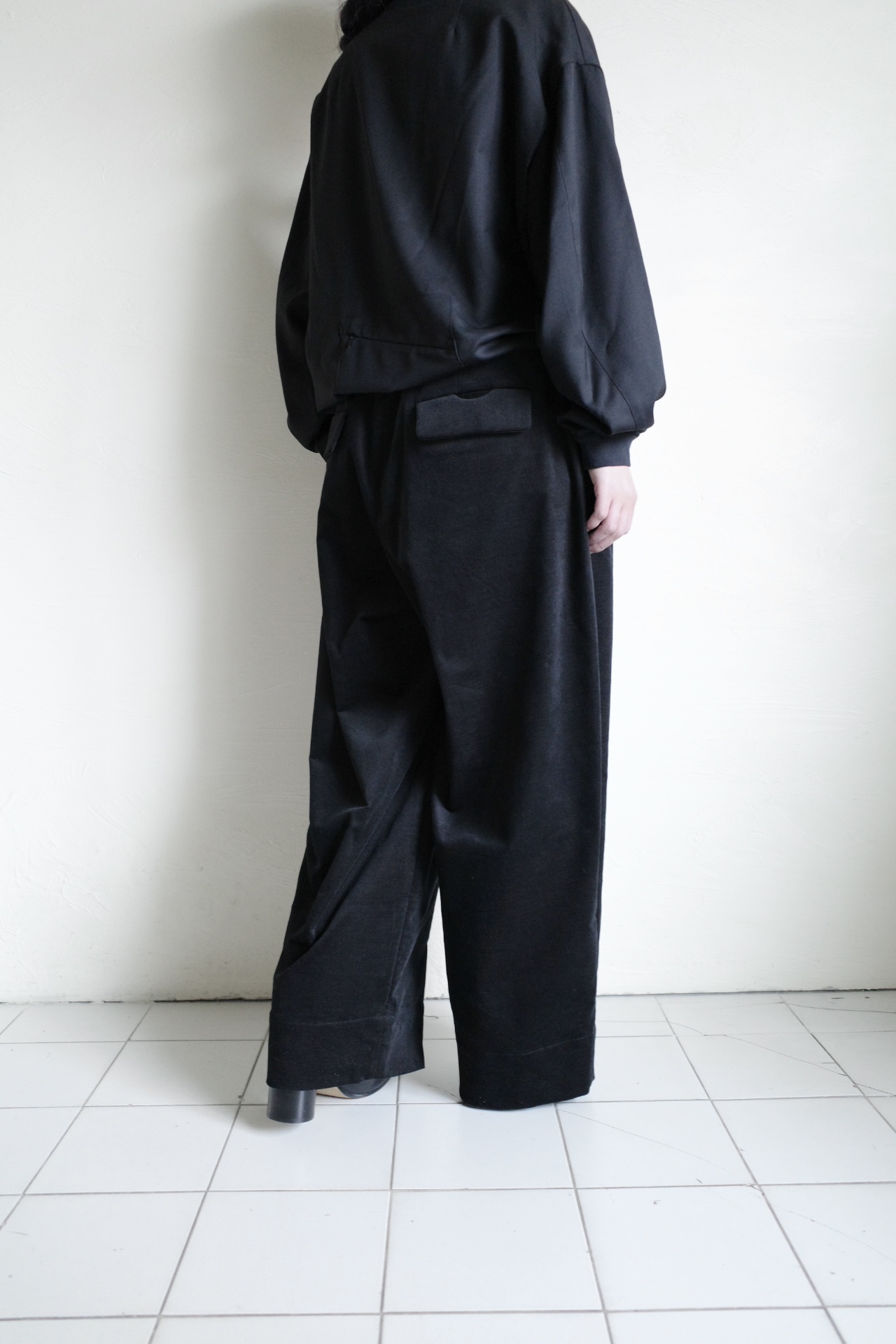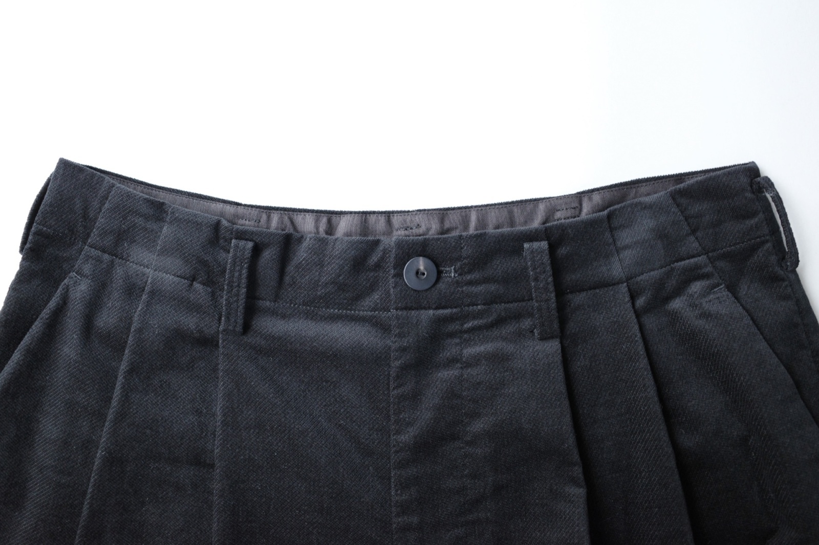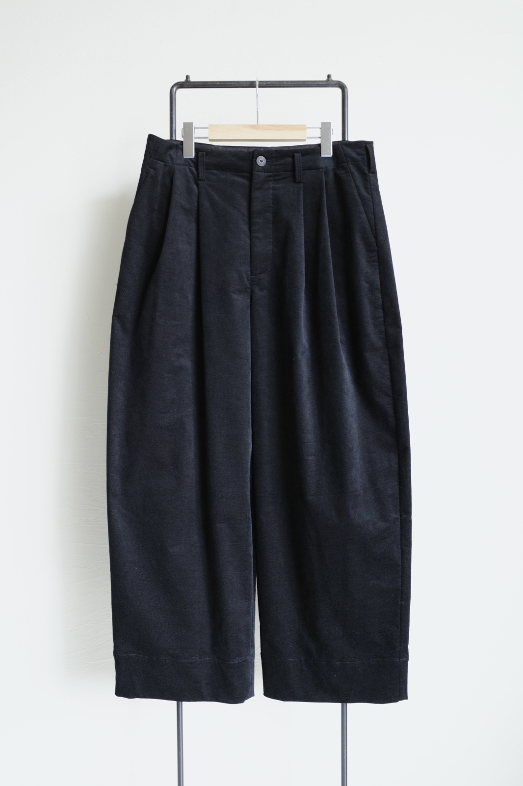 Dulcamara モールスキンシンプル2タックワイドパンツ・ブラック