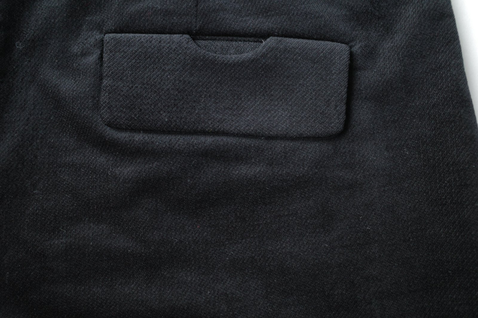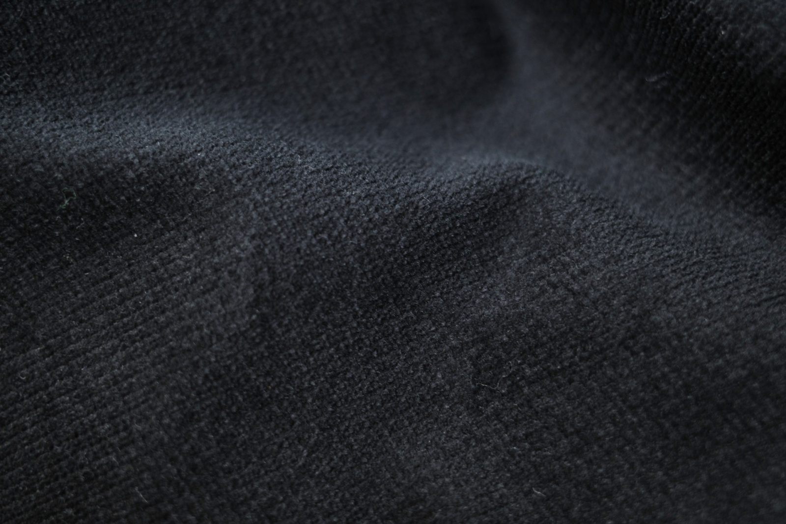 優しい肌触り、うぶげのような毛羽に多くの空気を取り込むことができるため、保温性に富んでいるモールスキン生地を採用。中肉でしっかりと肉感もありつつ柔らかくキックバックのある生地感。