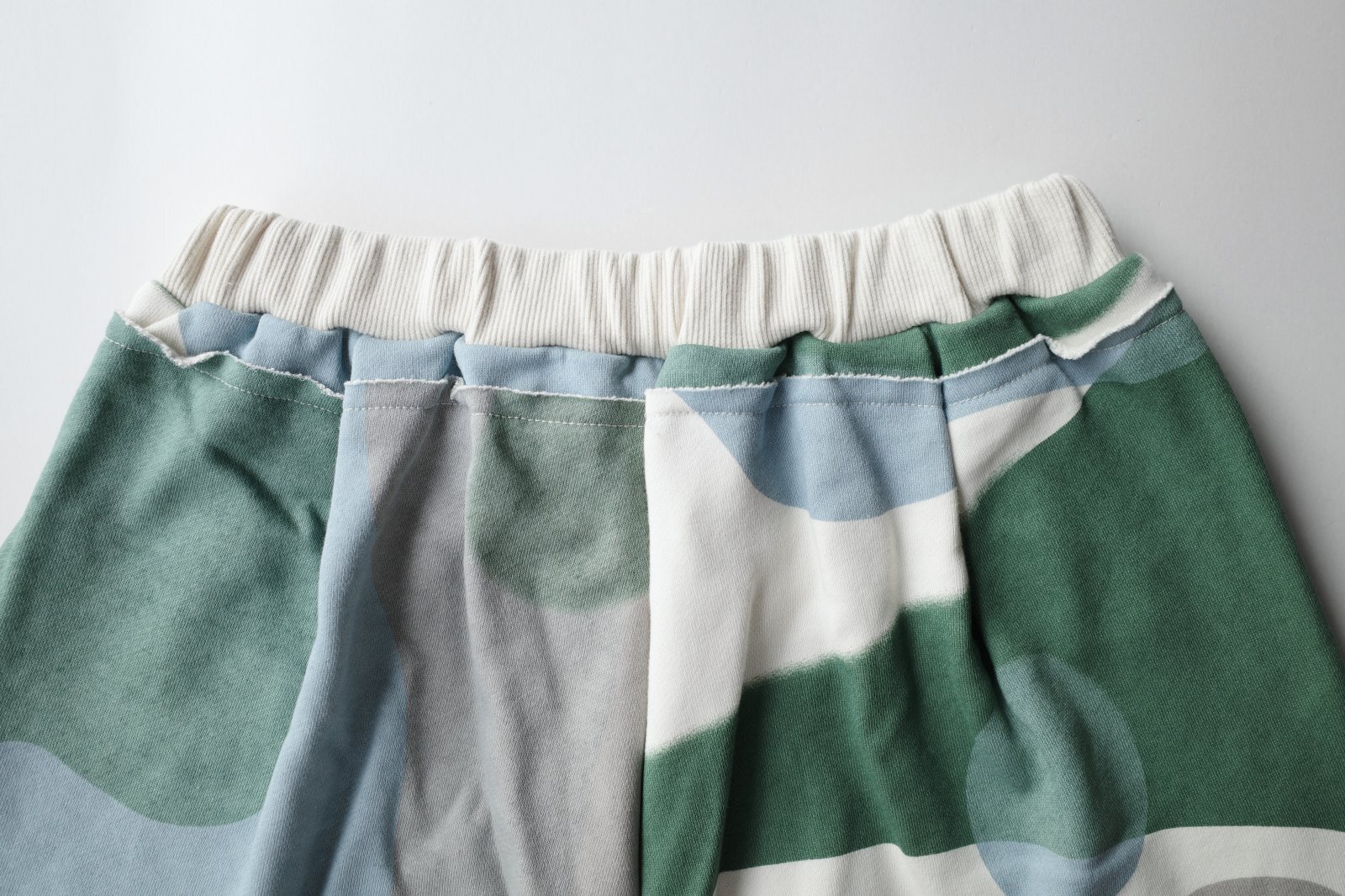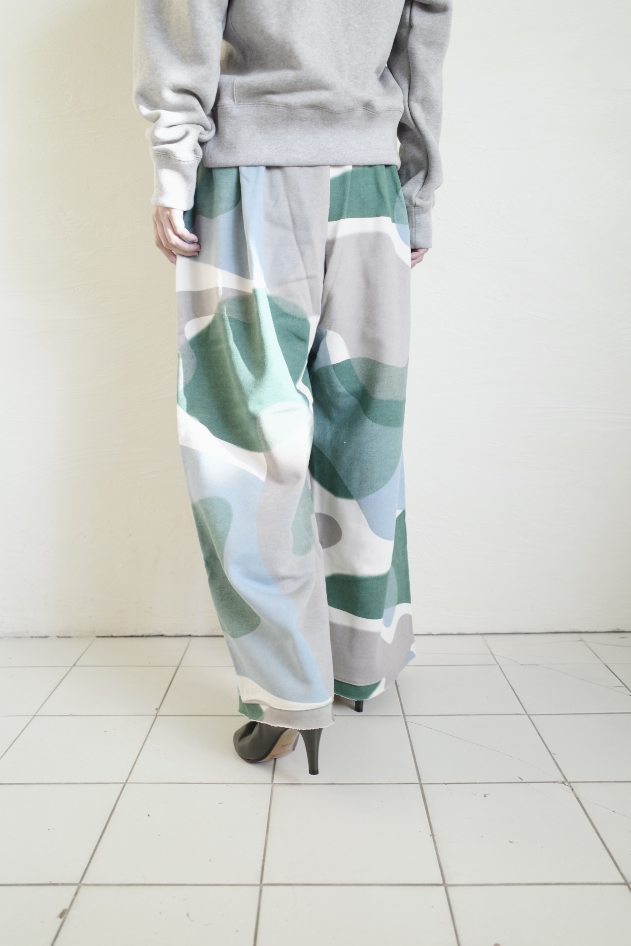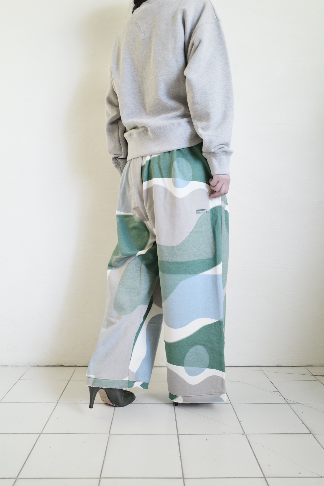ゆったりとしたワイドシルエットのスウェットパンツ。ウエスト接ぎで切替てポイントに。イージー仕様なのでフィット感のある着心地とともに幅広い体型をカバーしてくれます。液体や泡などの流動的で不定形な形を大判のシルクスクリーン印刷機で総柄に落とし込んでいます。ラバライトやリキッドライト、シャボン玉の表面の模様なども連想させます。Dulcamaraがこだわったカラー配色で描かれた模様。スタイリングに落とし込みやすい色合いにまとめ上げました。UNISEXアイテム。生地の特性状個々で色合い・サイズに若干差がある場合がありますご了承ください。