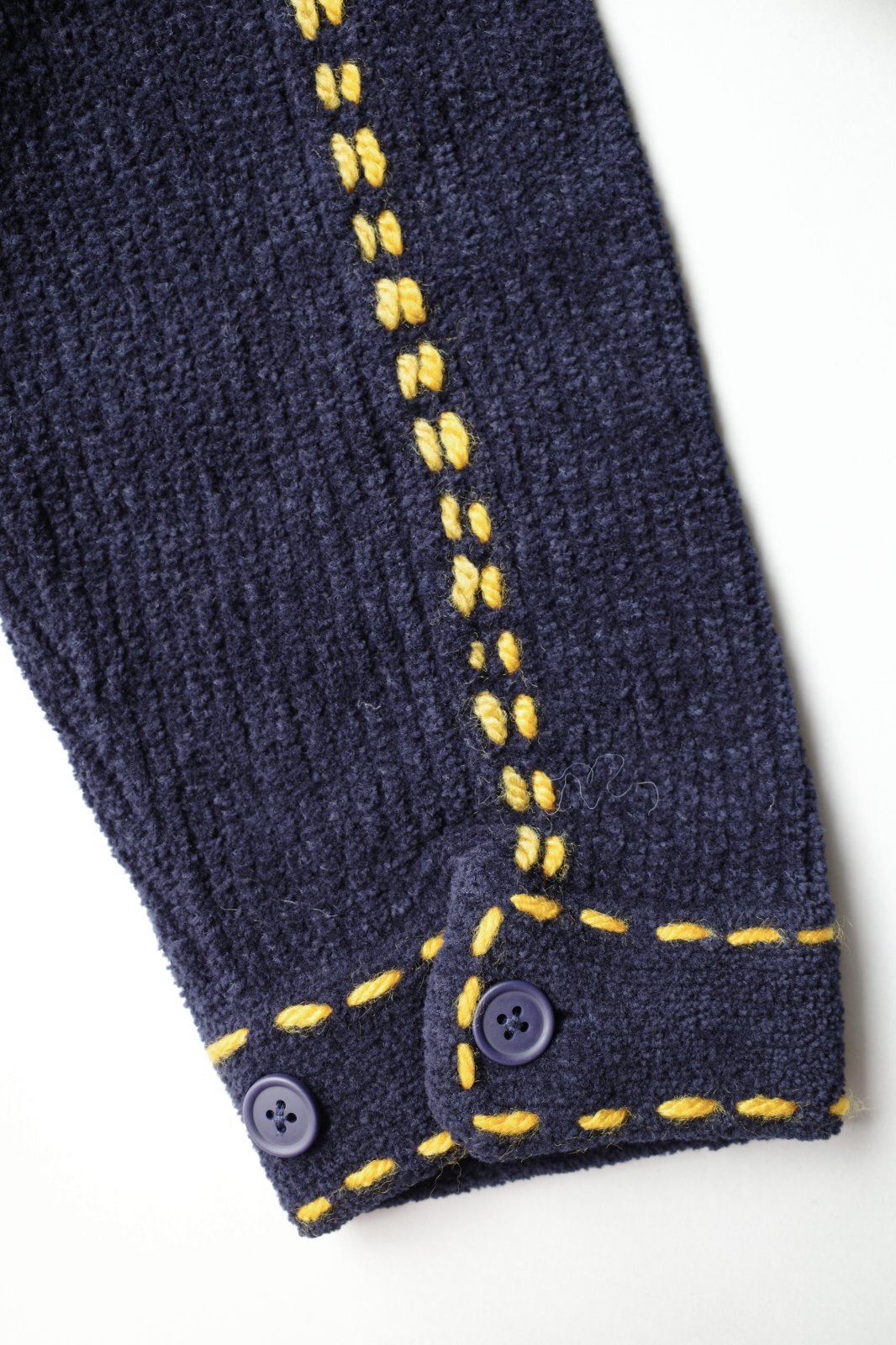 カーディガン。綿79%ポリエステル21% ハンドステッチ:アクリル100%