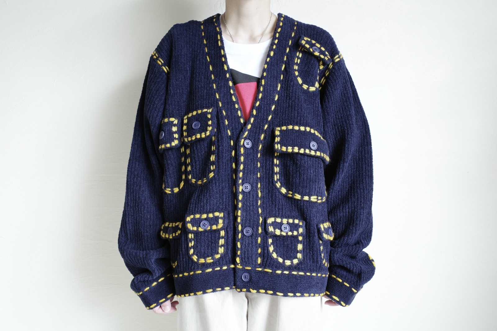 大小9つのポケットが、あどけなく規則的に配置された、可愛らしいニューモデルのPG1カーディガンです。 固いイメージのあるユーティリティアイテムを、文字通り柔らかい雰囲気で表現したユーモラスなアイテムです。ニットカーディガンの感覚で着用していただけます。後ろアームには赤ステッチでネーム風に。通年着ていただけるカーディガンです。都度アップデートを続ける定番アイテムを楽しんでください。UNISEXアイテム。個々で風合い・サイズに差がある場合がありますがご了承くださいませ。