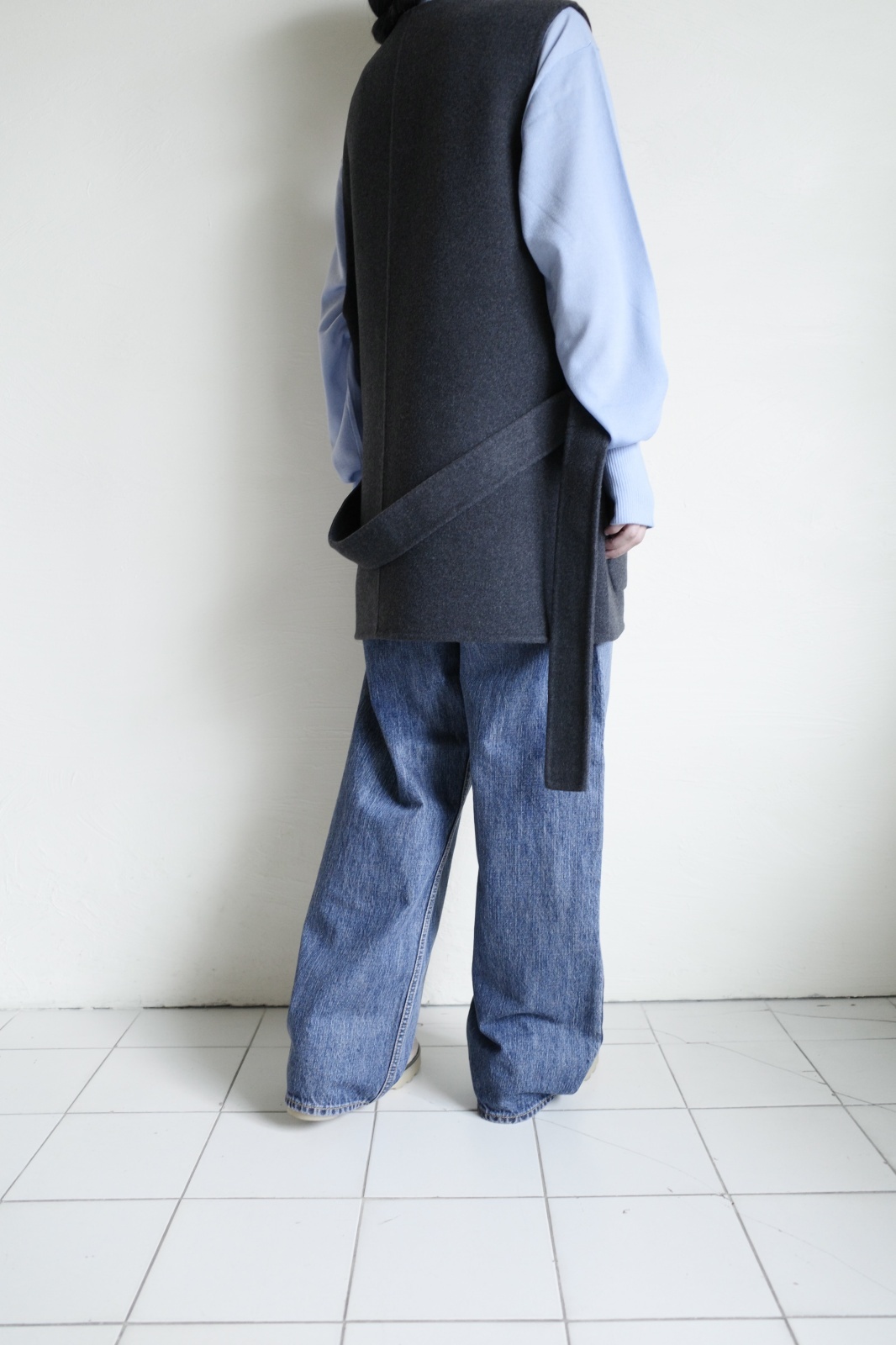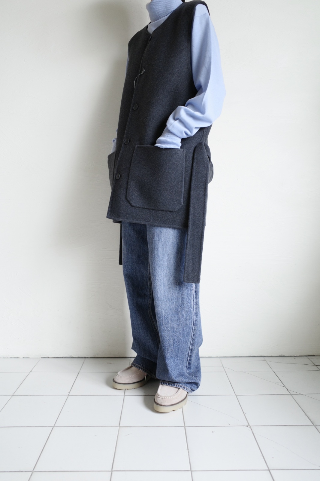 FOLL sp160s wool soft rever wardrobe vest・charcoal