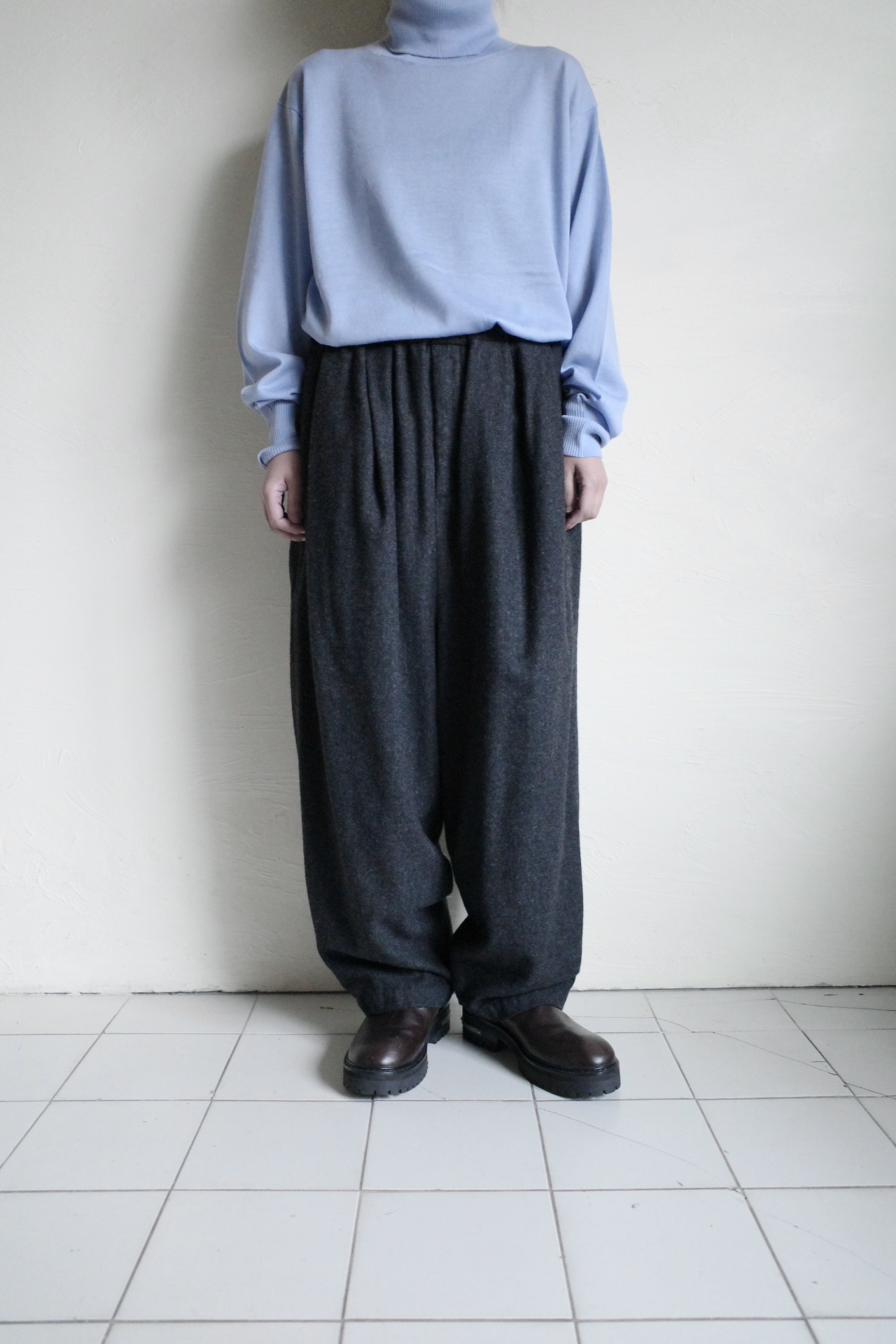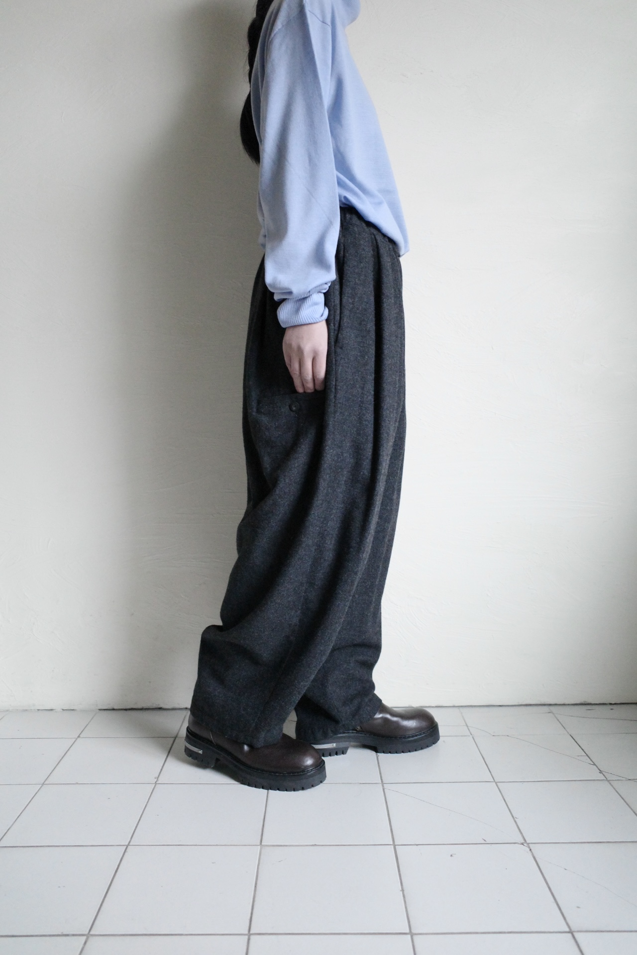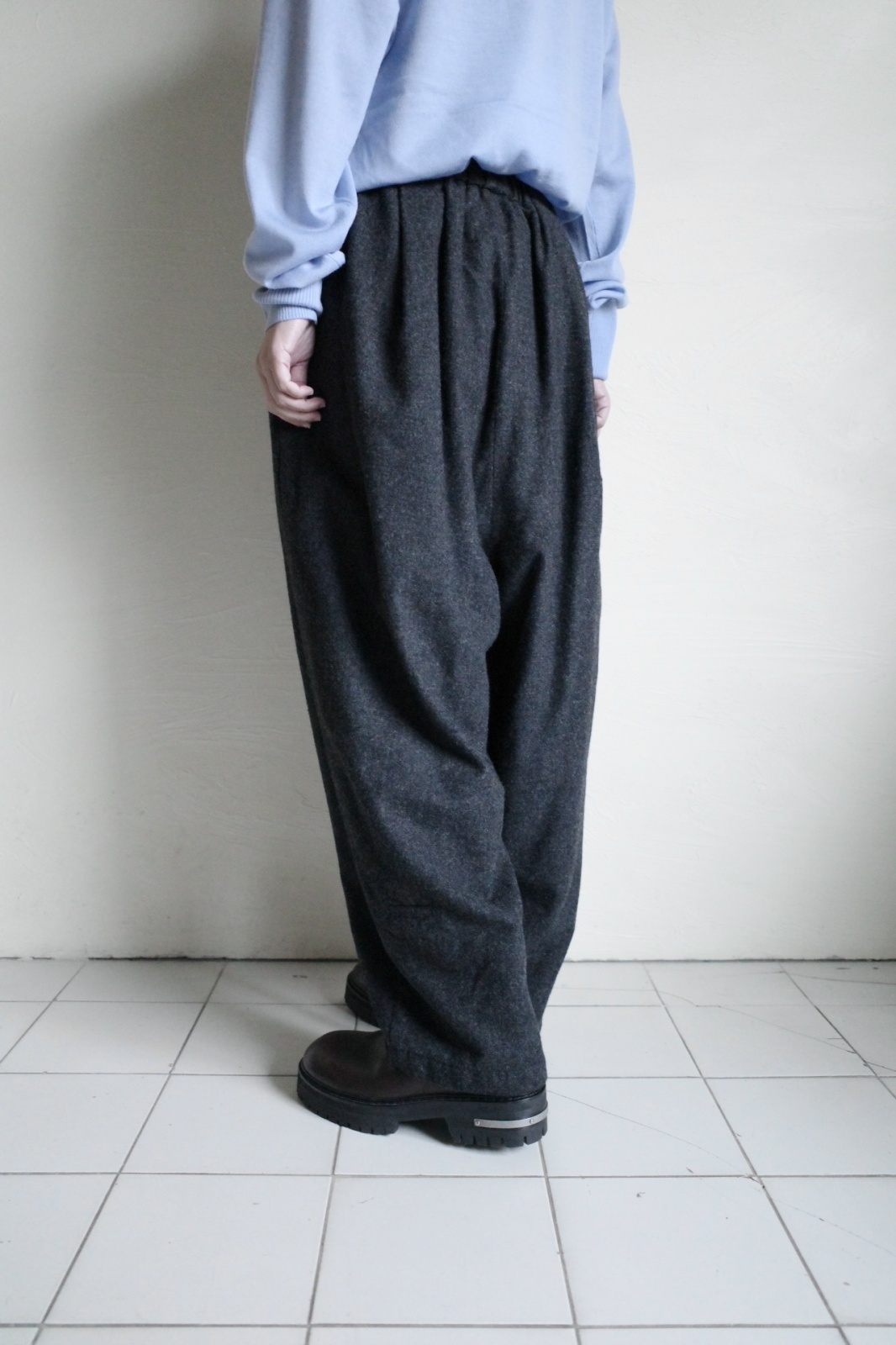 Dulcamara 縮絨ウールタックワイドパンツ・チャコールグレー