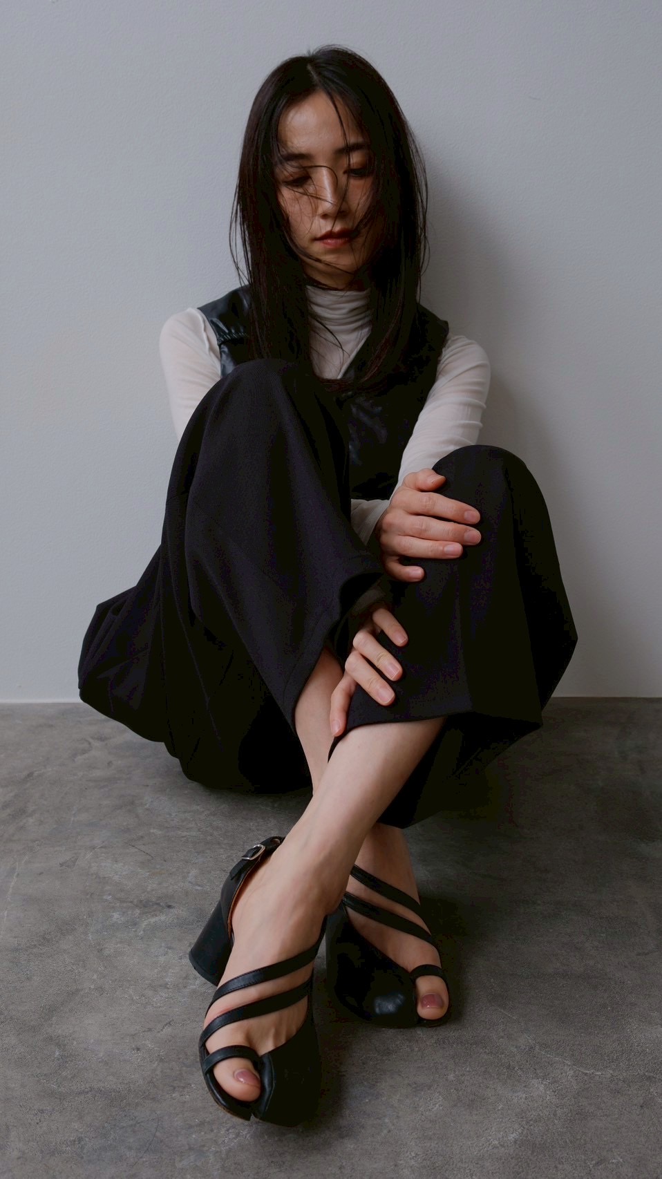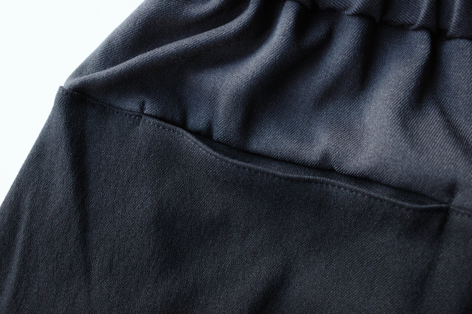 モード感漂うカーブシルエットとツータック構造、そしてセンタープレスによる縦のラインが、脚をすらりと見せる洗練されたフォルムをつくり出します。ゆるすぎない絶妙なバランスで、きちんと感と動きやすさを実現。さらに、ウエスト部分をバイカラー配色で切り替え、視線を上に引き上げることでデザイン性をプラスしつつも脚長効果も期待できます。モードにも馴染むよう設計された配色使いがアクセントとなり、シンプルなトップスとのスタイリングでも洗練された印象に。