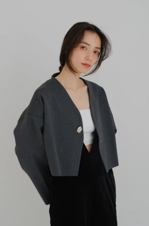 フロントには特殊ボタンをあしらい、纏うだけでスタイリングのアクセントに。羽織りとしてもトップスとしても活躍し、日常から旅先まで幅広く使える一着です。