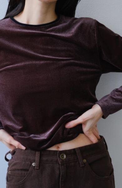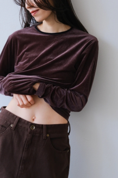 トレンドのシアーベロア素材を使用。光沢感と柔らかさを兼ね備え、肌に滑らかにフィットします。