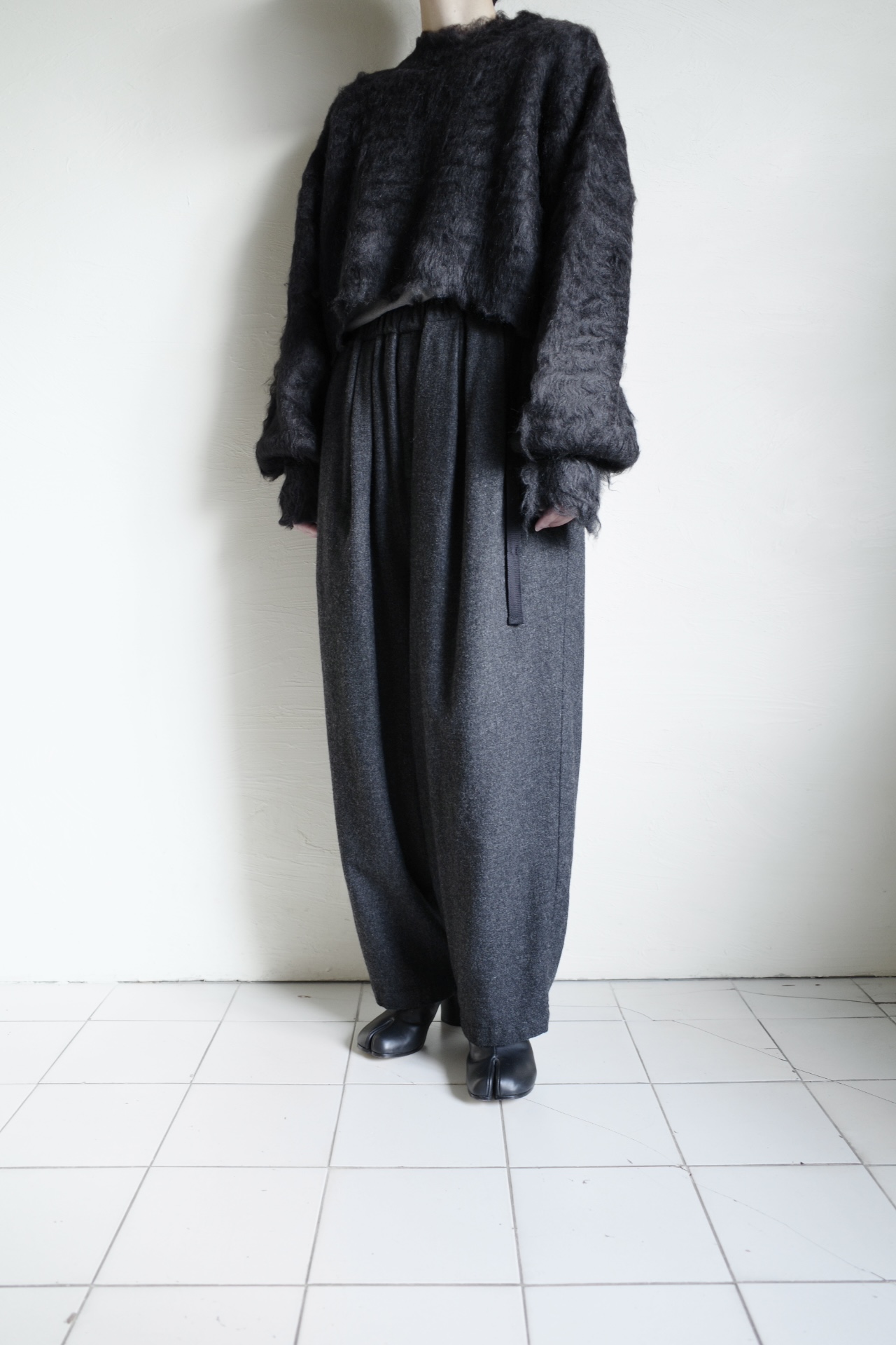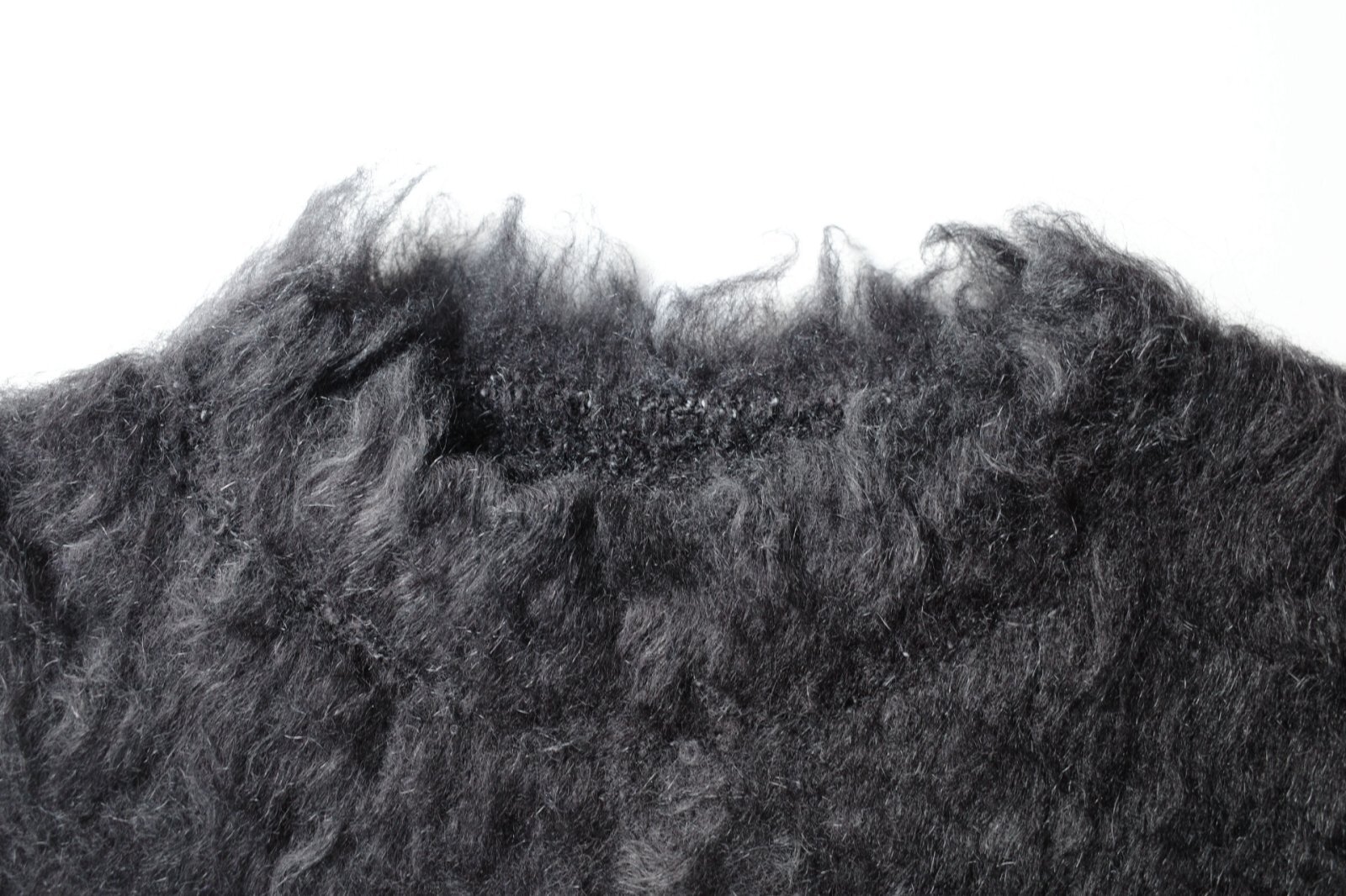 毛足の長いシャギー感を持つ上質なニットでありながら、肌触りの良さに拘りました。繊細な加工と糸の選定によって、チクチクしないシャギーニットに仕上げました。ウールをブレンドすることで保温性の高さと柔らかさを両立させ、空気を含むようなふんわり感を実現。毛並みの美しい表情と上品な光沢が、着るだけでスタイリング全体に存在感と洗練されたムードをもたらす一着です。