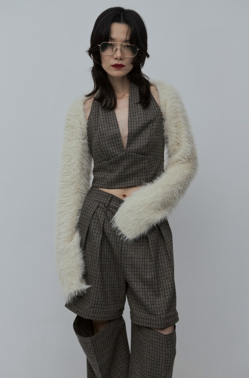 人気のリムーバルパンツをベースに新たな素材と、裾のシルエットをリデザインしました。ファスナーをスリットのように開け、カラータイツやレースタイツを覗かせるスタイルもおすすめ。 ウエストからファスナー切り替えまでのサイズとデザインは前回同様のまま残しているので、 ファスナーで取り外しが出来る機能を活かし、別の裾とチェンジして着用することが可能です。 すべて外してハーフパンツとしてもご利用頂けます。 後ろ半分は、ゴム仕様になります。 ウール特有の接触がある為、ウエストベルト下から膝上のファスナーまで裏地をつけています。 接触が少ないファスナー下の裾側にはデザインを優先し裏地を付けていません。個々でサイズ・風合いに差がある場合がありますご了承くださいませ。