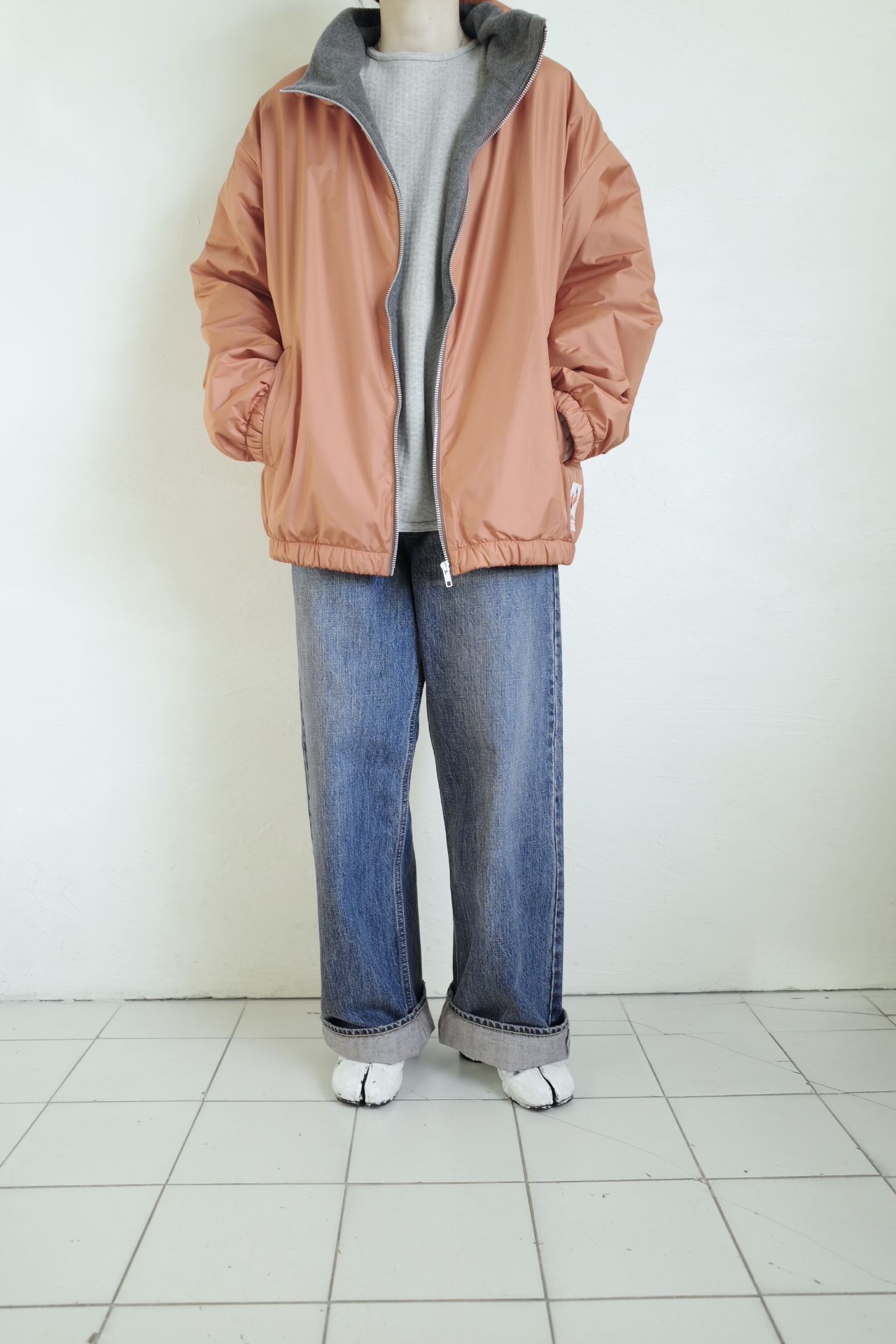 ナイロン✕フリースブルゾン。ナイロン地に裏地にはフリースを張って防寒性・保湿性の高い組み合わせ。袖部分の裏地は通りがよいようにキルティング生地を採用。フロントはジップ仕様。ポケット付きで裏地はチェックでちょっとしたポイントに。裾は軽くゴムを通して風が入り込まないようになっています。ゆったりなサイジングで大きめなトップスの上から着れちゃいます。コストパフォーマンスが高い一枚です。UNISEXサイズ。生地の仕様上風合い・サイズ等に差がある場合がありますがご了承ください。