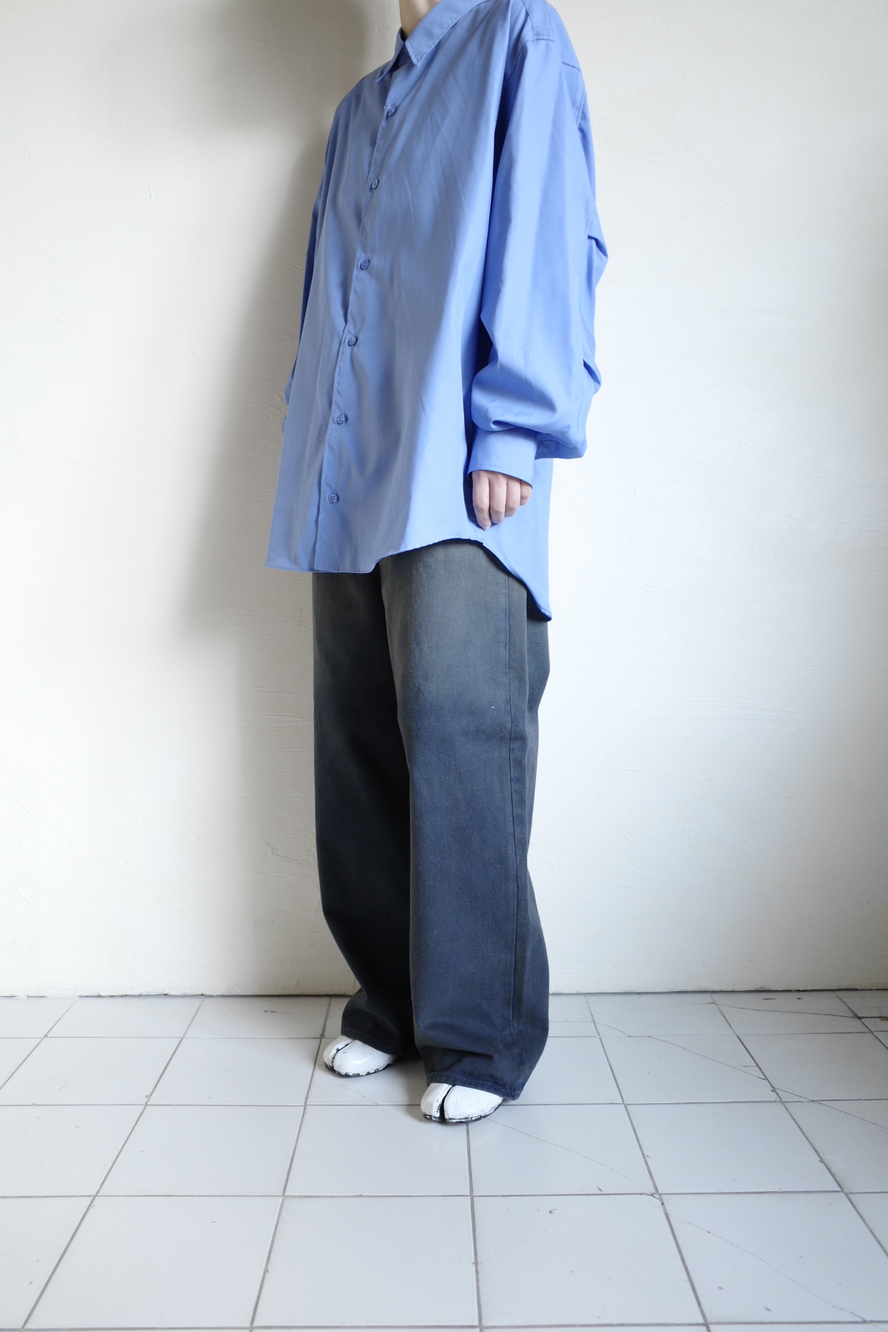 100番手双糸で高密度に織り上げた、ハリのある細番手ブロード素材を使用。一般的なシャツ地の約1.5倍にあたる210本の経糸を打ち込み、繊細ながら芯のある風合いに。洗いを重ねるごとに生まれる独特のしわと陰影が、素材の奥行きを引き立てる仕上がり。