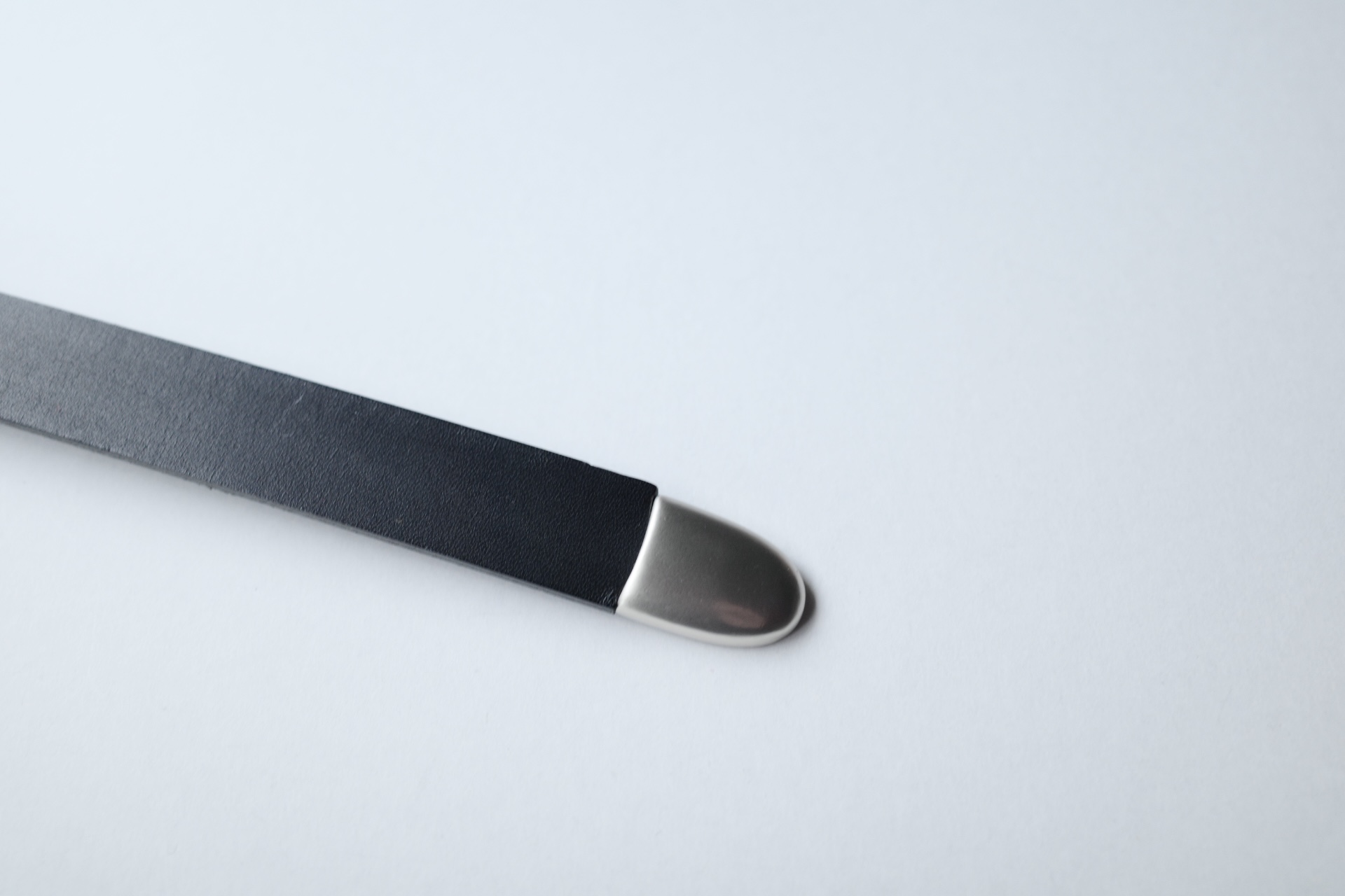 こちらは通常モデルより20cm長く設定しています。剣先に金具を付けた仕様。他のNLのベルトよりも全長を長くとり、垂らした際にアクセントになるように制作しました。バックルはシルバーカラー。バックルには厚みがあり存在感があります。サルカン、剣先も金具を装備。アンティークシルバーのような色味です。垂らすことでまた違うアクセントを作ることができます。UNISEXでお使いいただけます。スラックスはもちろんデニムやチノ等ともしっかり合わせられます。ハンドメイドで製作しており、元々金具に擦れや革に個々で風合い、刻印や色合いに差がある場合がありますがデザインとしてご了承くださいませ。